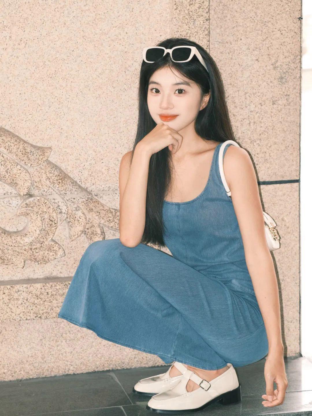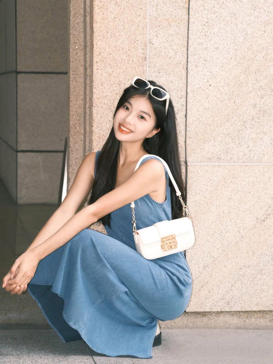 侧身蹲下,手肘放在膝盖上,用手轻轻托住下巴,眼神直视镜头并微笑。这一姿势能够很好地展现你的面部轮廓,同时缓解手不知道怎么放的尴尬,照片好看又出片。