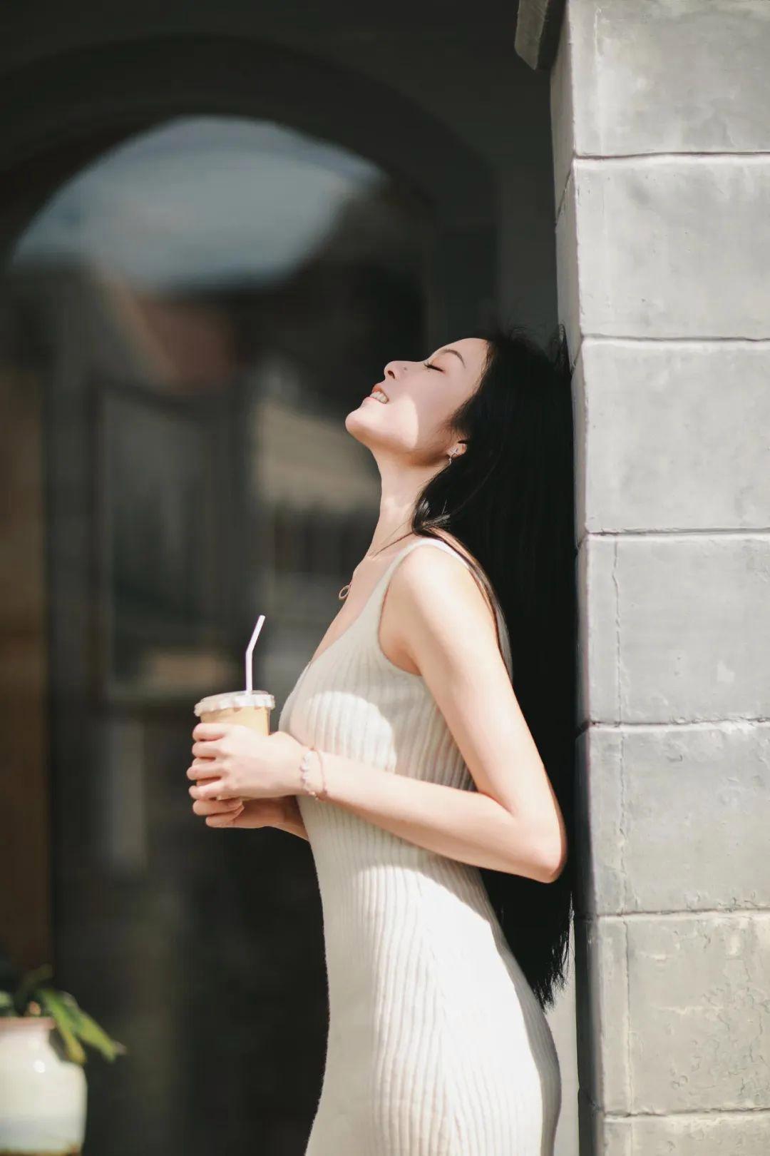 侧身靠着街边墙壁,手拿咖啡,仰头闭上眼睛。这个姿势既能展现出你的放松和自在,又让人感受到一种温柔的气质。闭上眼睛的瞬间,仿佛整个世界都安静下来,让裙子照片充满了时尚的宁静感。