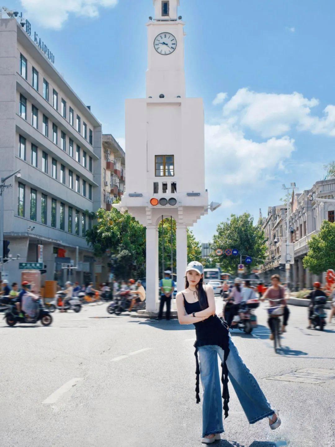 在一些著名的旅游景点前,不妨采用翘脚抬手的姿势,像是在向朋友们介绍景点一样。这个姿势不仅显得俏皮可爱,还能让照片看起来更加生动有趣。景点背景加上你自信的姿态,旅游朋友圈的照片一定美翻天!