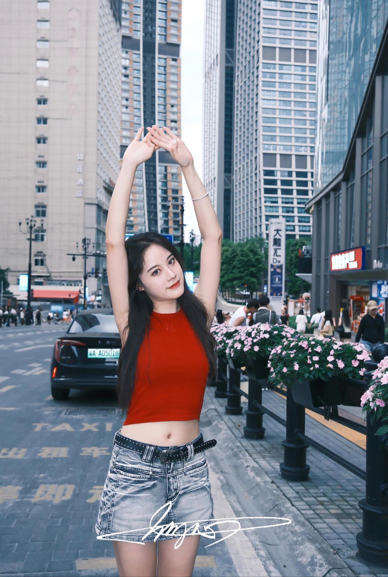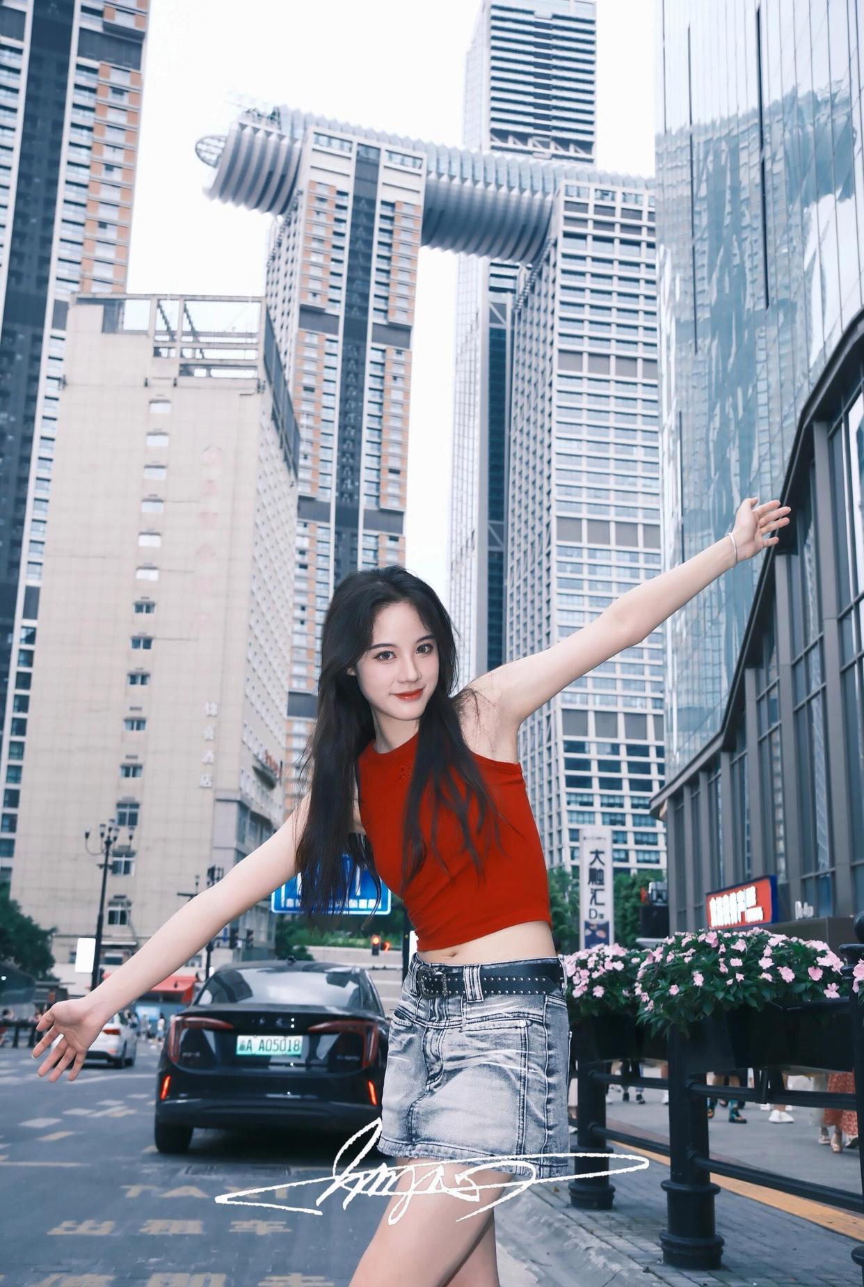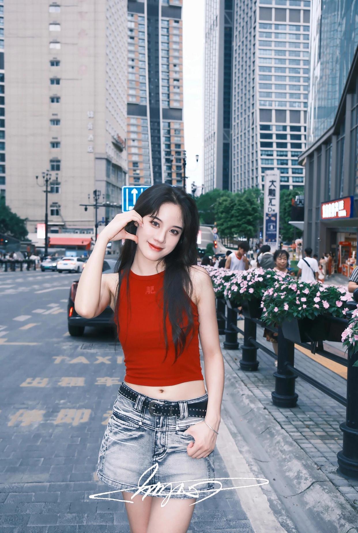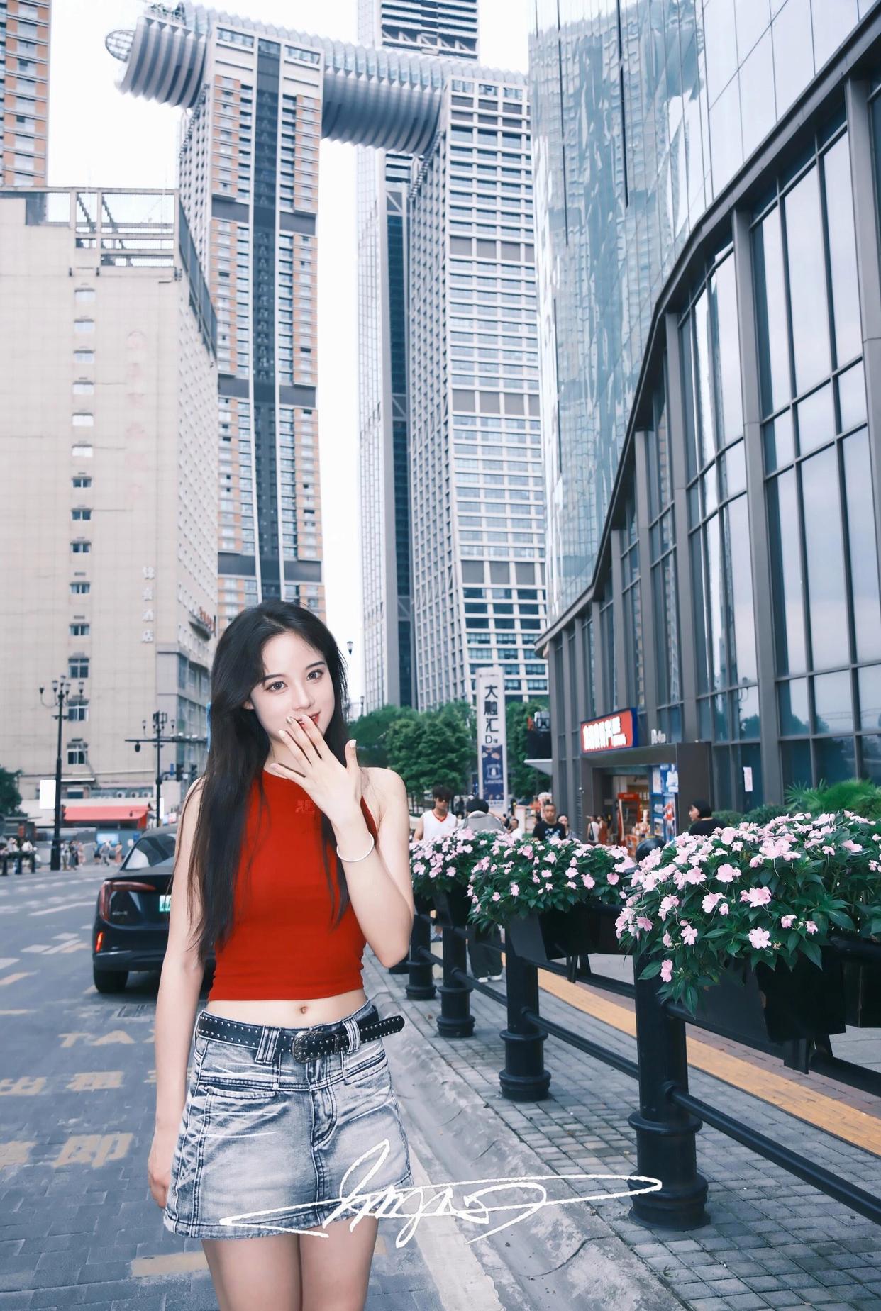 在街边拍照时,不妨一手自然放着,单手抬起来假装害羞捂嘴偷笑,这种动作不仅能够展现出你的活泼和可爱,还能够通过这个动作让照片看起来更加生动,整体效果好看又显瘦。