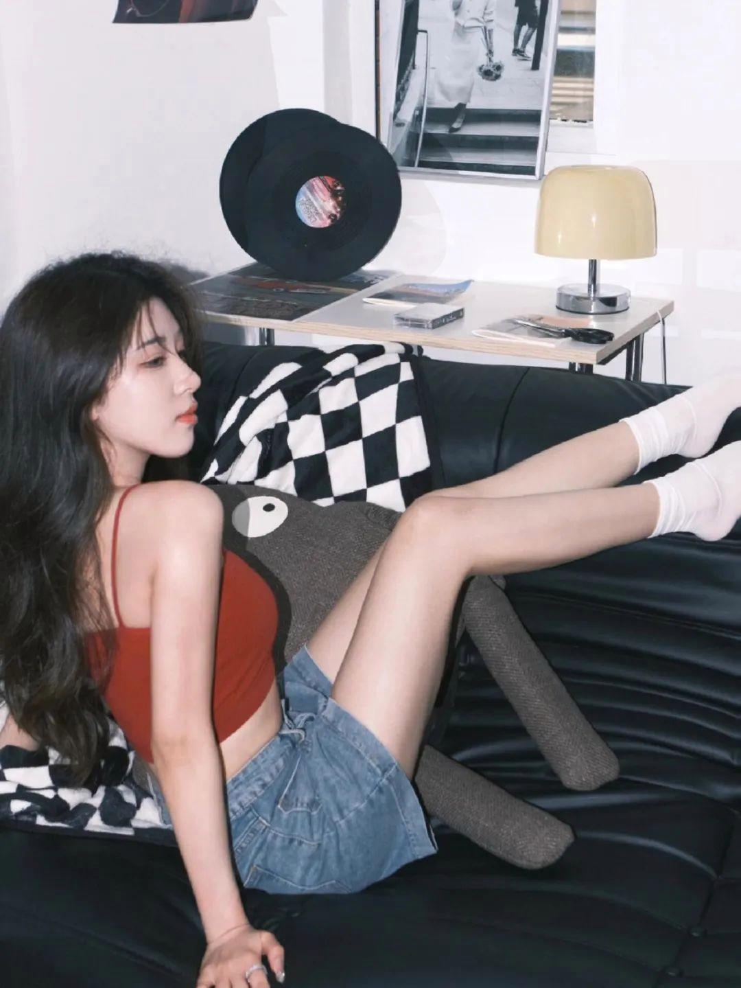 躺在沙发上,双脚轻松翘起,可以手拿一本书或一张唱片等作为道具,增加画面的层次感。这个姿势既能让你看起来放松自如,又能通过巧妙的道具运用,拍出非常有情调的居家写真照。