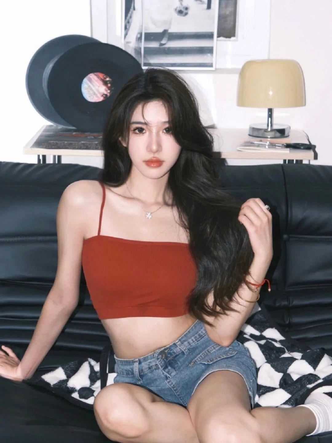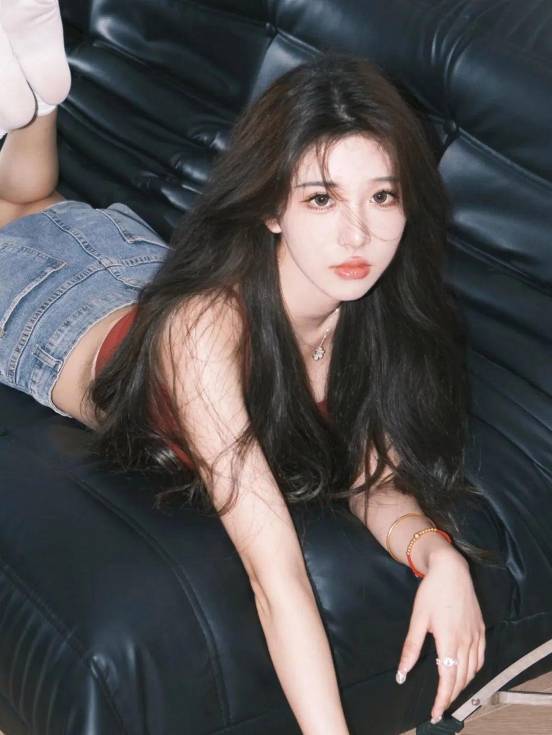 在沙发上坐着,一只手自然地翘起,另一只手撩动头发,这样的姿势能让你的照片看起来慵懒而姓感。自然放松的坐姿能展现出你的自信与从容,轻松拍出居家写真中的迷人风采。