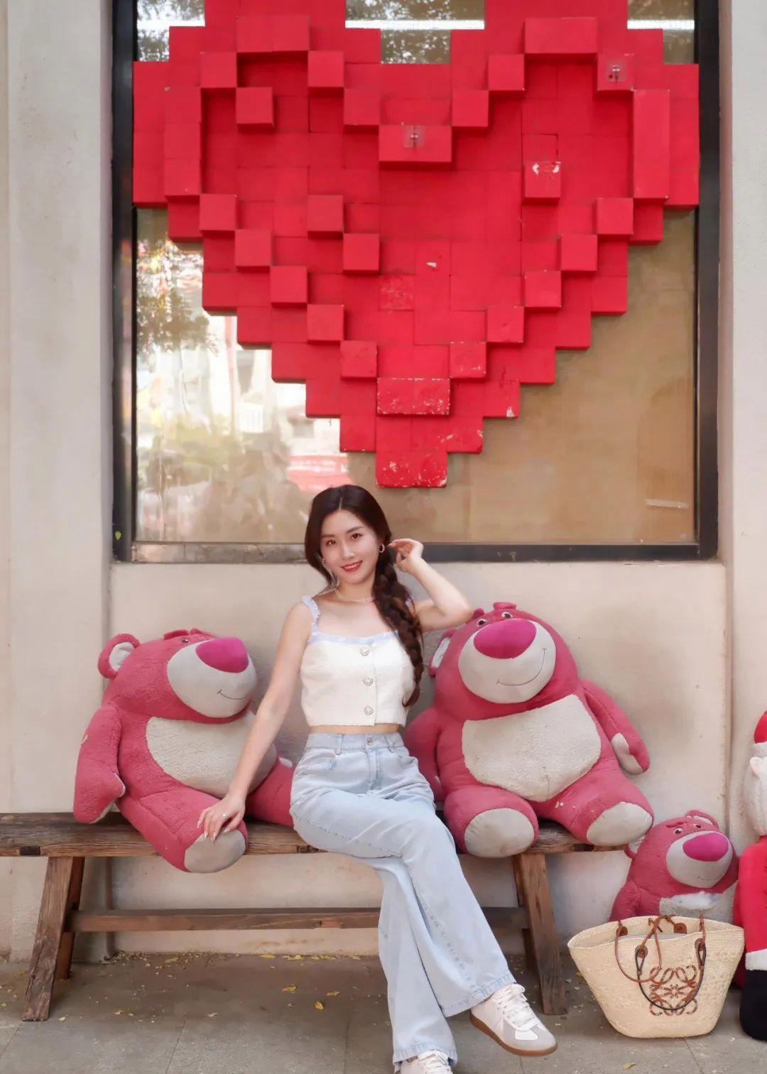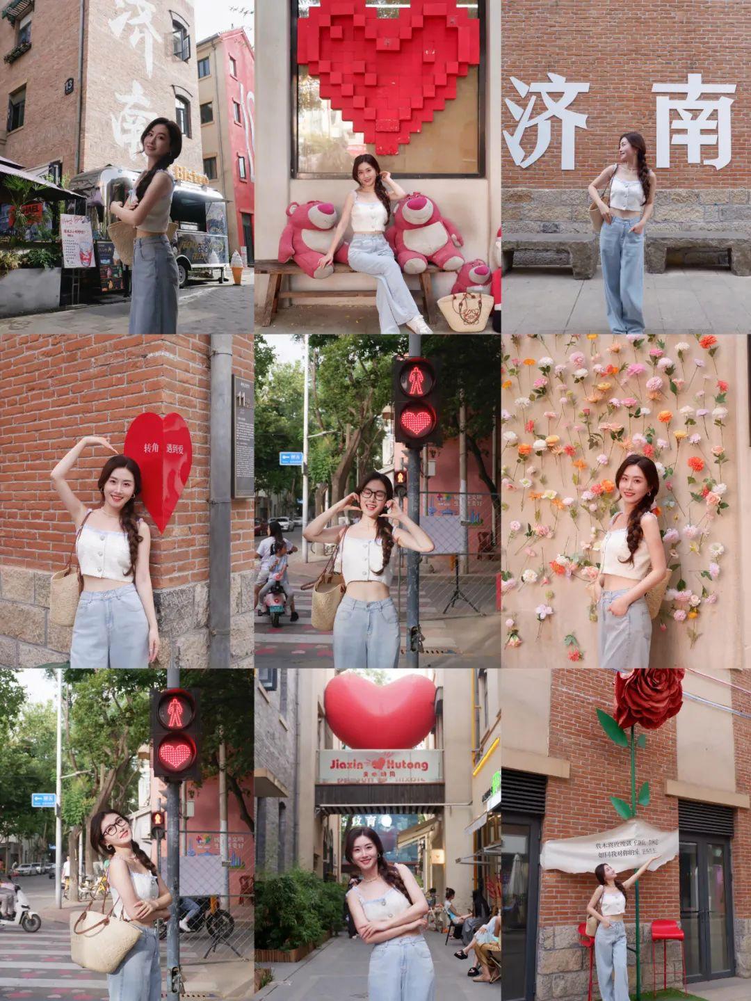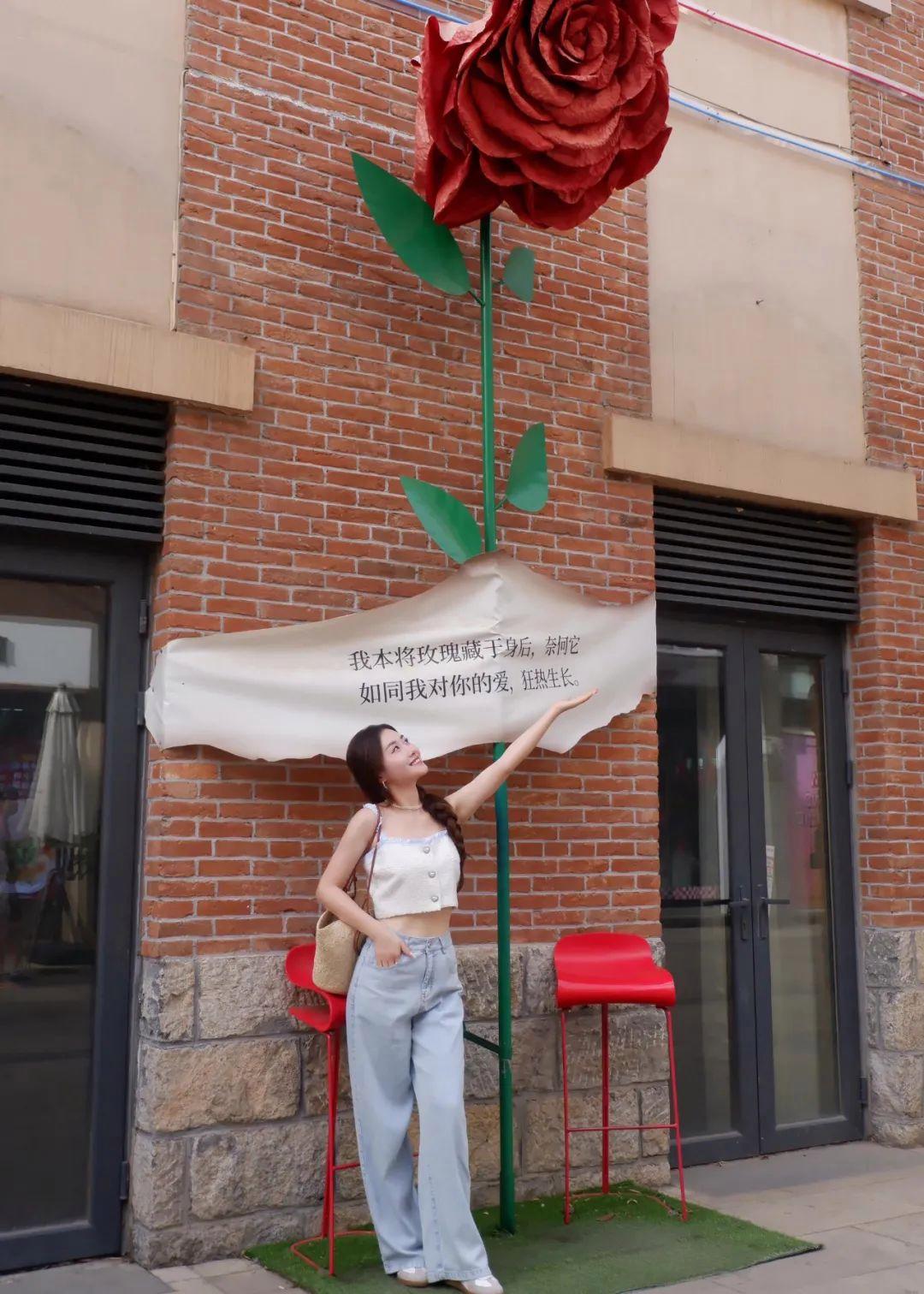 在小景点前,单手比出爱心,与景点合影,这个姿势既简单又可爱,非常适合打卡拍照。爱心手势不仅能够增添照片的甜美感,还能让整个画面充满温馨的氛围。