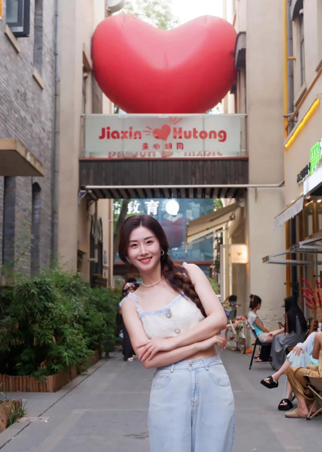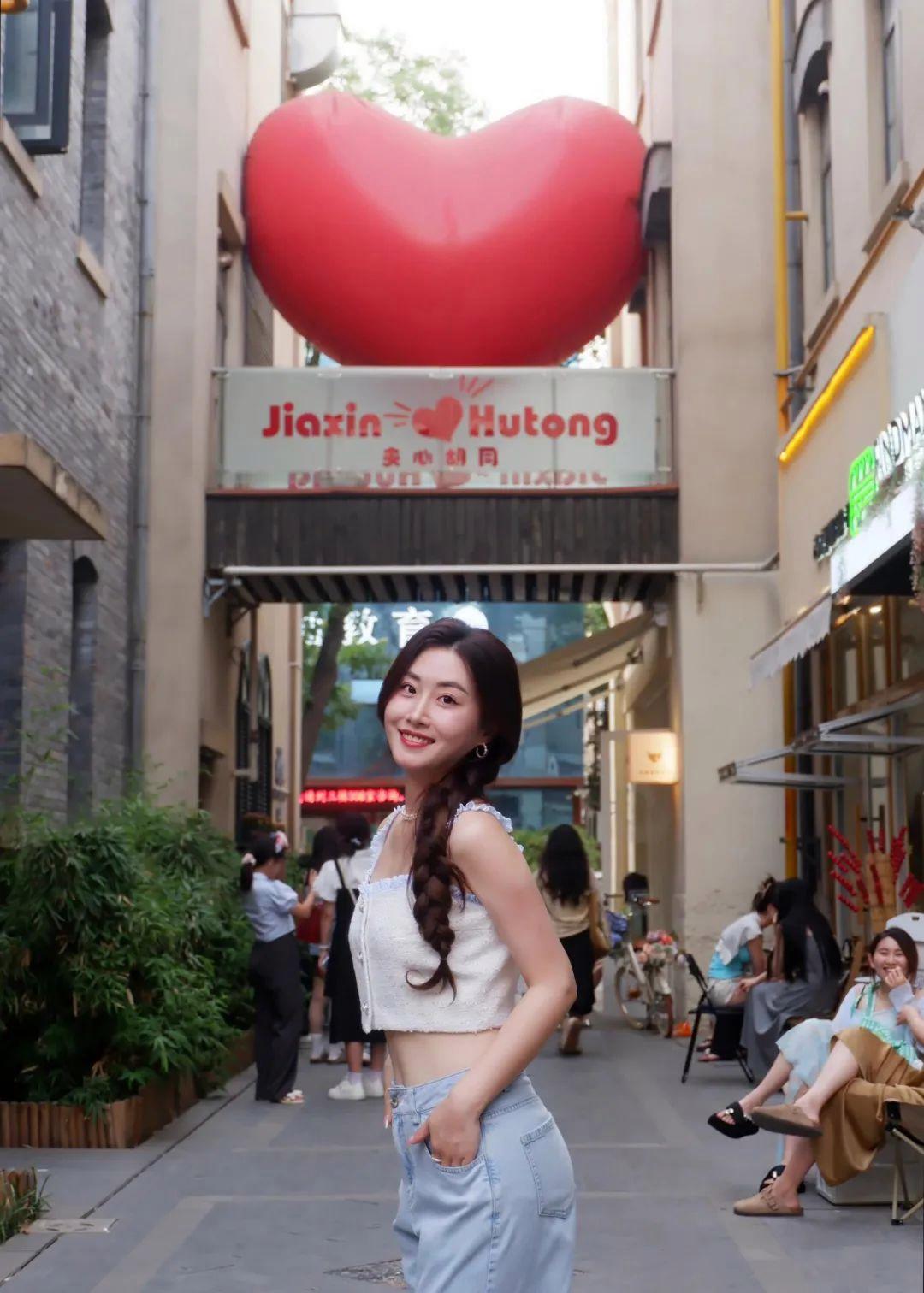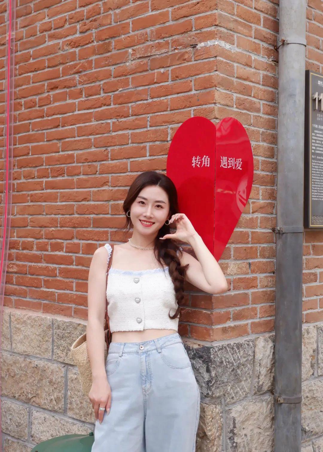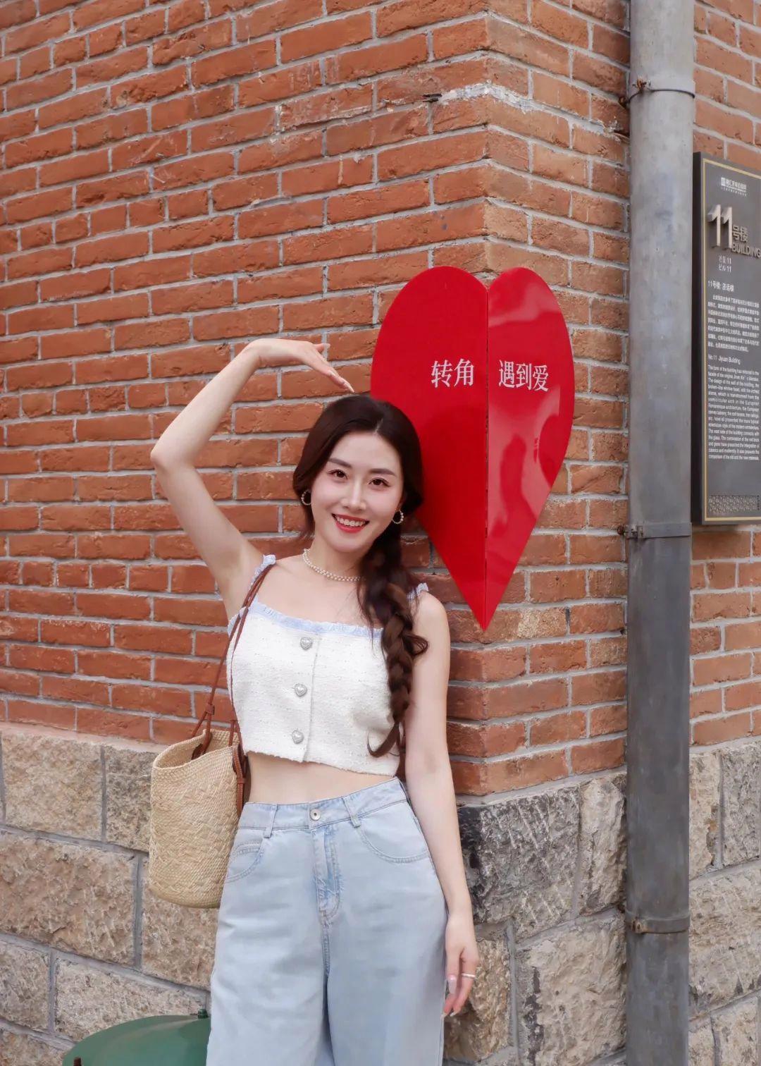 在小景点前,单手比出爱心,与景点合影,这个姿势既简单又可爱,非常适合打卡拍照。爱心手势不仅能够增添照片的甜美感,还能让整个画面充满温馨的氛围。