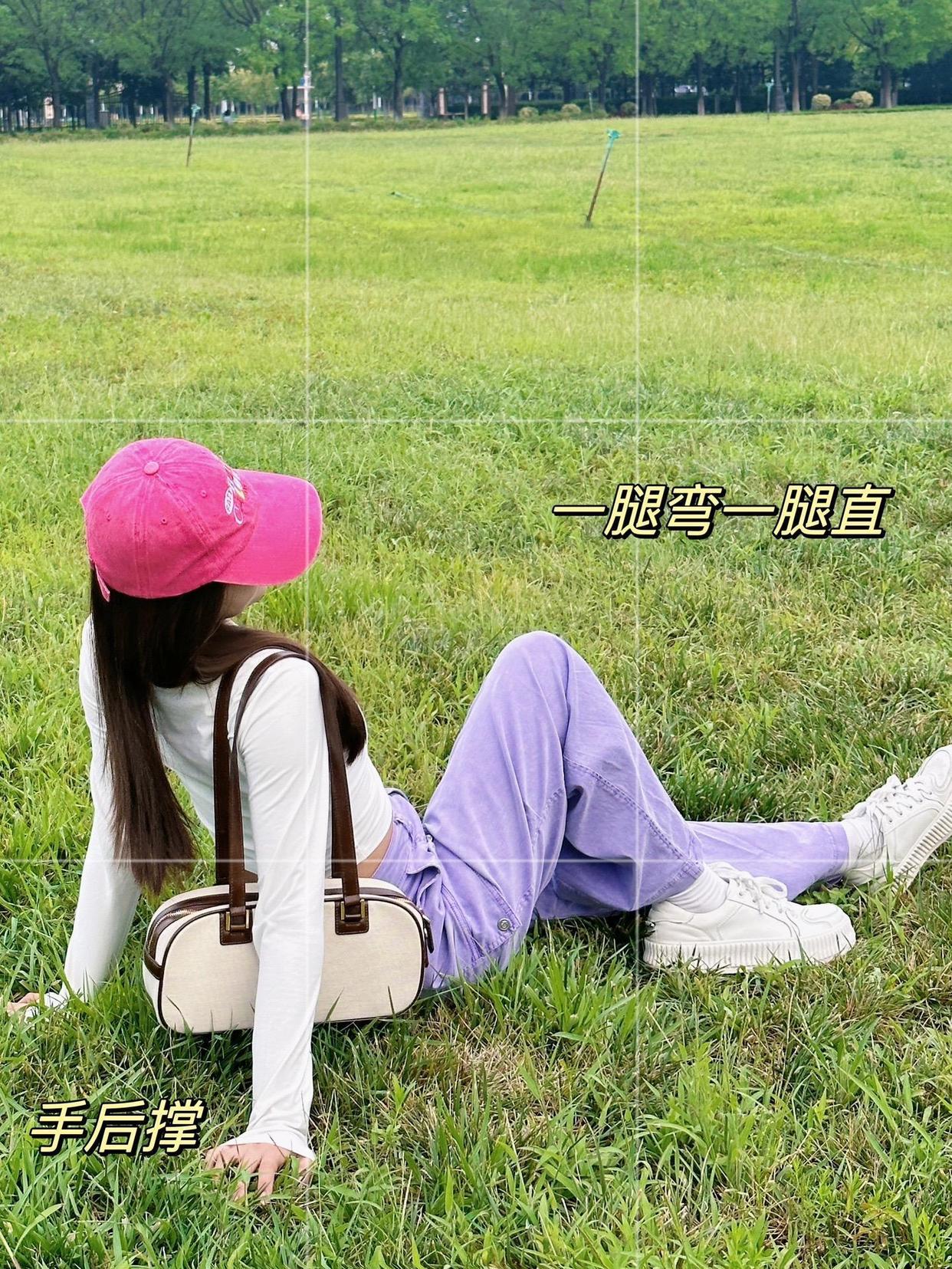 侧身坐着,双手后撑,形成自然的支撑姿势,同时一条腿弯曲,另一条腿伸直。这个姿势不仅能够展现出身体的曲线,还能通过腿部的伸展让整个人看起来更加修长有型。轻松打造出显高显瘦的效果。