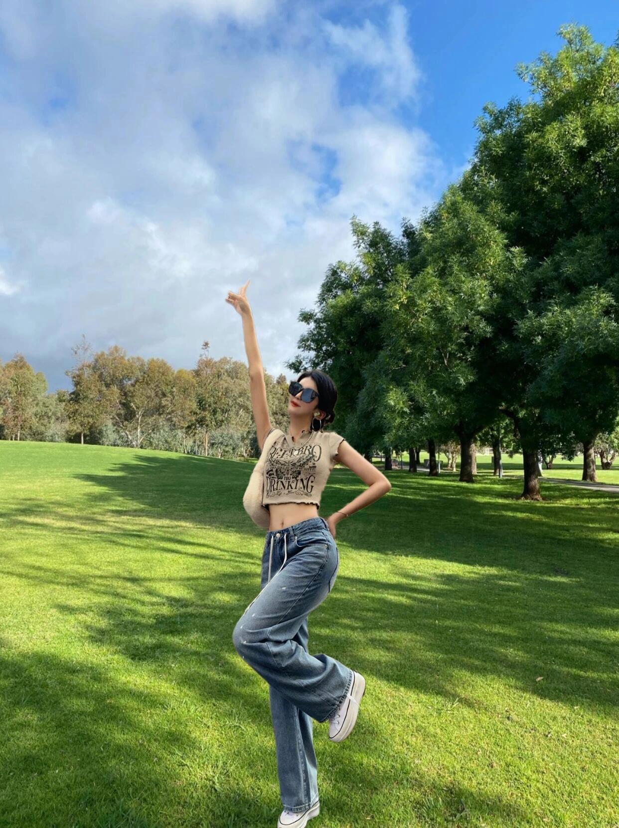 站立时将一只脚轻轻翘起,双手一只叉腰,另一只手抬起并微微歪头,这个姿势非常适合打造俏皮又修长的效果。通过翘脚和歪头的动作,不仅增加了照片的趣味性,还能让全身线条更加流畅,显得高挑有型。