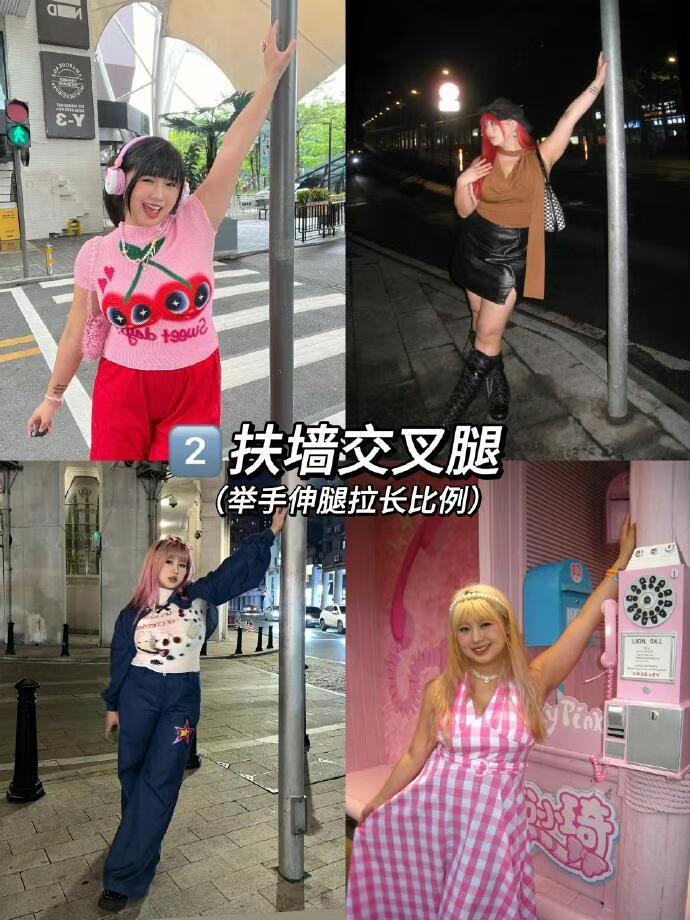 扶着栏杆或墙灯,双腿交叉站立,这样不仅能够拉长腿部线条,还能通过举手伸腿的动作,提升整体的身高比例。这个姿势能够很好地修饰身材,显瘦的同时,还能让你看起来更有气质。