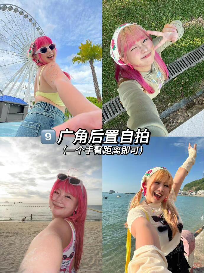 广角镜头在拍照时能够拉伸身材和四肢,特别适合想要显瘦的女生。后置摄像头的自拍不仅能够捕捉更广阔的背景,还能让你在照片中显得更加修长。这个技巧非常适合日常自拍使用,简单又实用。