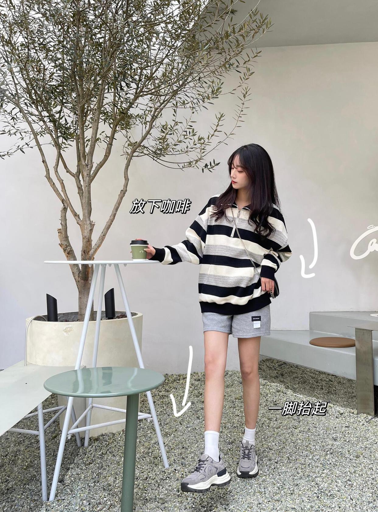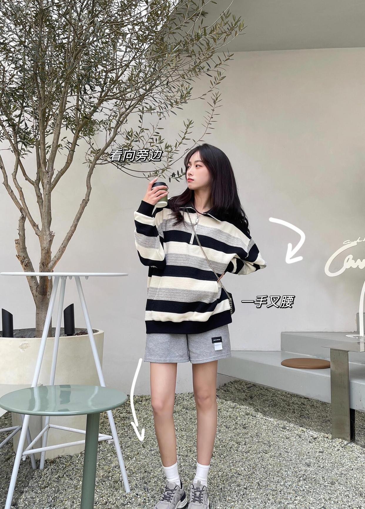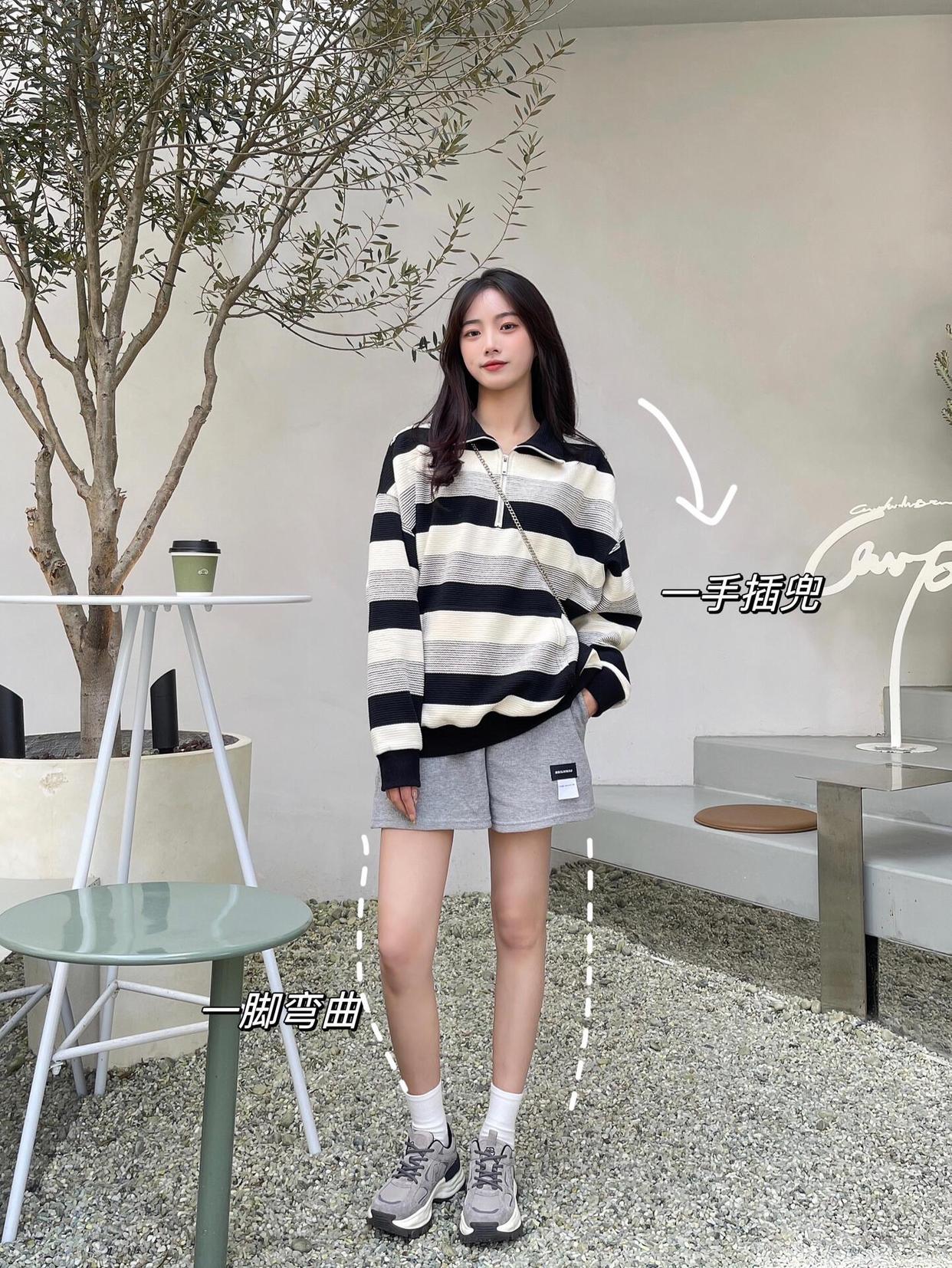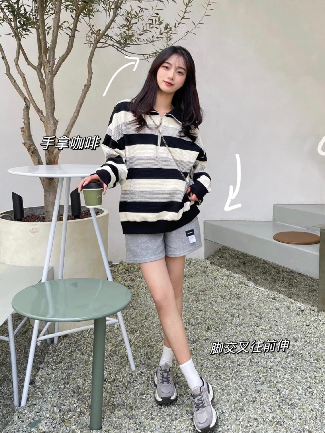 在有楼梯的地方拍照时,可以尝试一脚弯在楼梯上,侧身站立,一手拿着咖啡,另一手回头打招呼。这种姿势不仅让照片显得更有层次感,还能通过动作的互动性缓解拍照的尴尬,让你看起来更加自然,漂亮腿长也显得更加突出。