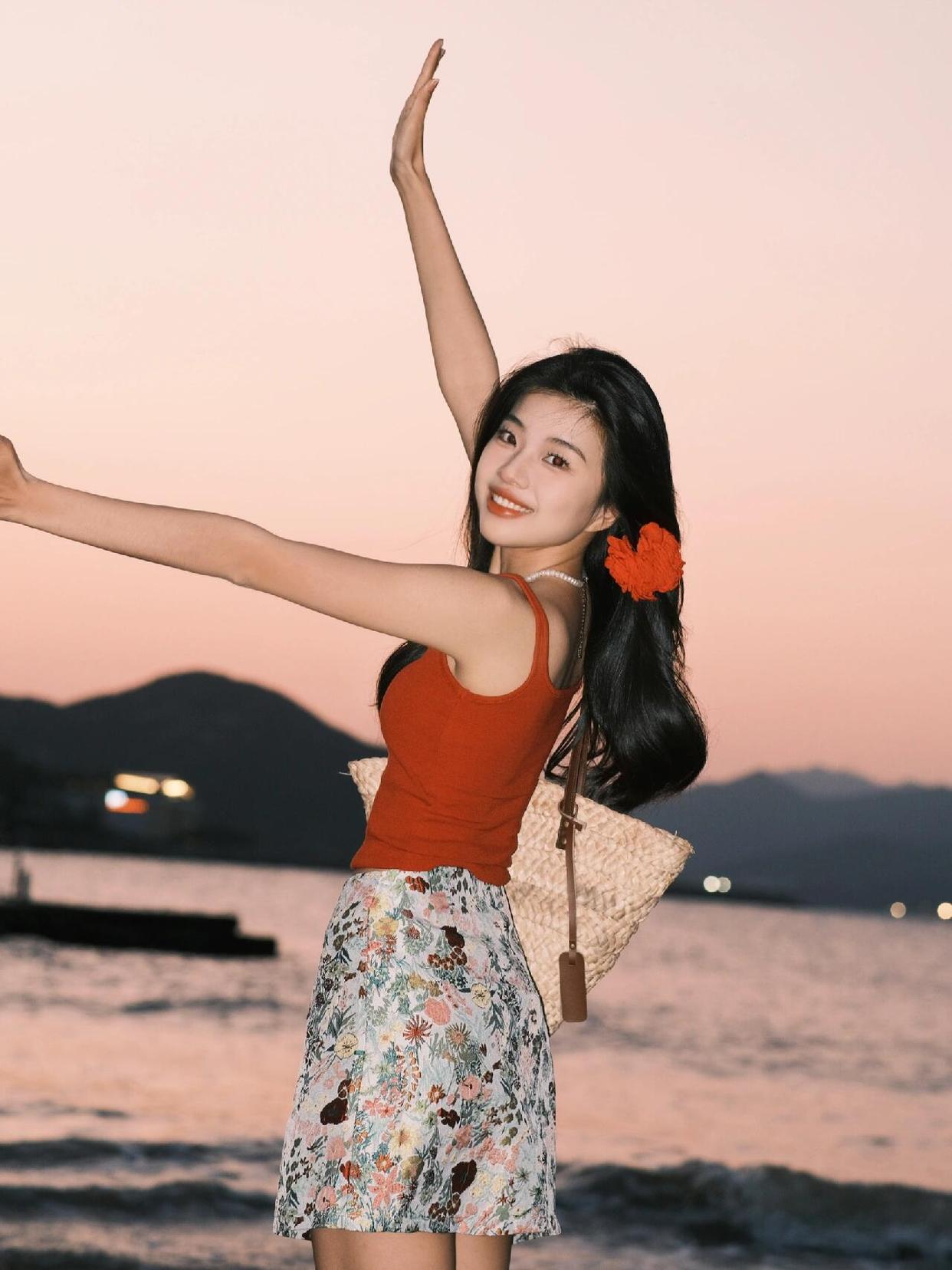站立拍照时,不妨双手举得高高的,歪头微笑看向镜头。这种动作简单但效果却出奇的好,特别是当你站在开阔的景色前,双手的动作可以增加照片的层次感,而微笑和歪头则增加了几分俏皮和可爱。