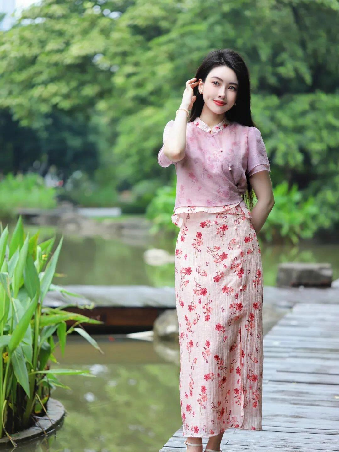 穿上自信的裙子,站在旅行路上的河边,双手拿着扇子放在腰间,微笑看向镜头。这样的姿势不仅能够展现你的自信与优雅,还能让你的裙子在照片中更加突出。