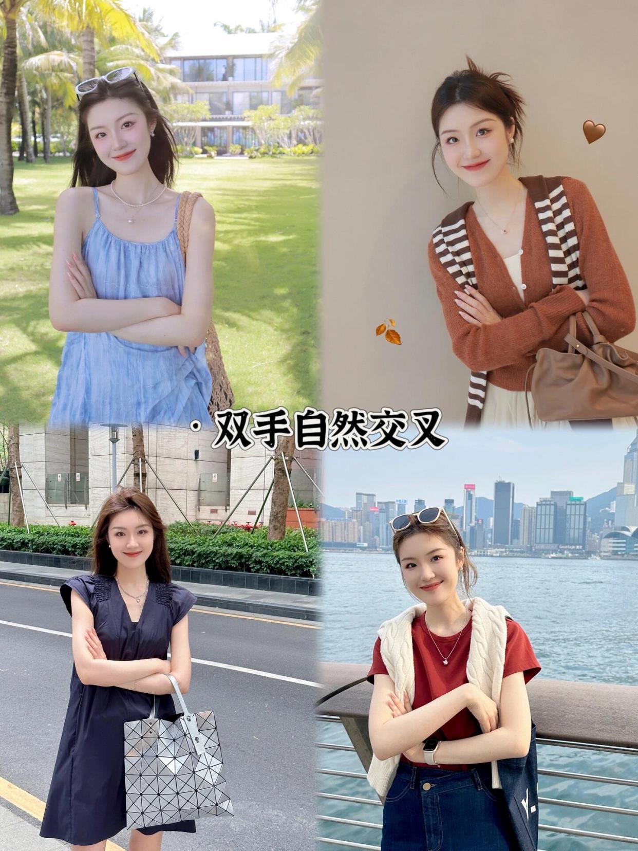 最后一个姿势是双手自然交叉微笑,这个姿势能够展现出你落落大方的气质。适合在景区、街头等场景中拍摄。自然交叉的双手能够让你看起来更加放松,而微笑则增添了亲和力。这个姿势非常百搭,无论是在什么场景中都能轻松驾驭。