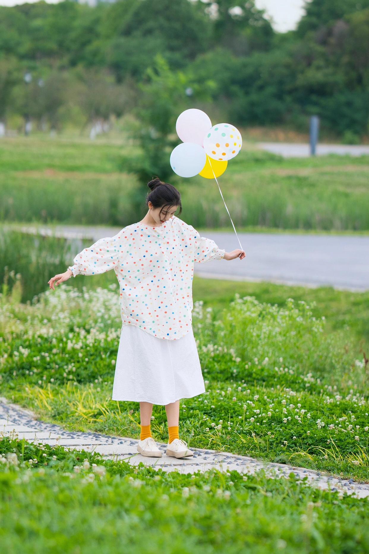在公园的草地小道上,手拿气球,张开双手自由奔跑,这一姿势充满了童真与活力。奔跑时飘扬的裙摆、随风飞舞的气球,瞬间将画面变得动感十足。尤其是在阳光透过树叶洒在草地上的时候,这样的拍照姿势能够让整张照片看起来生机勃勃,同时也充满了自然的氛围感。