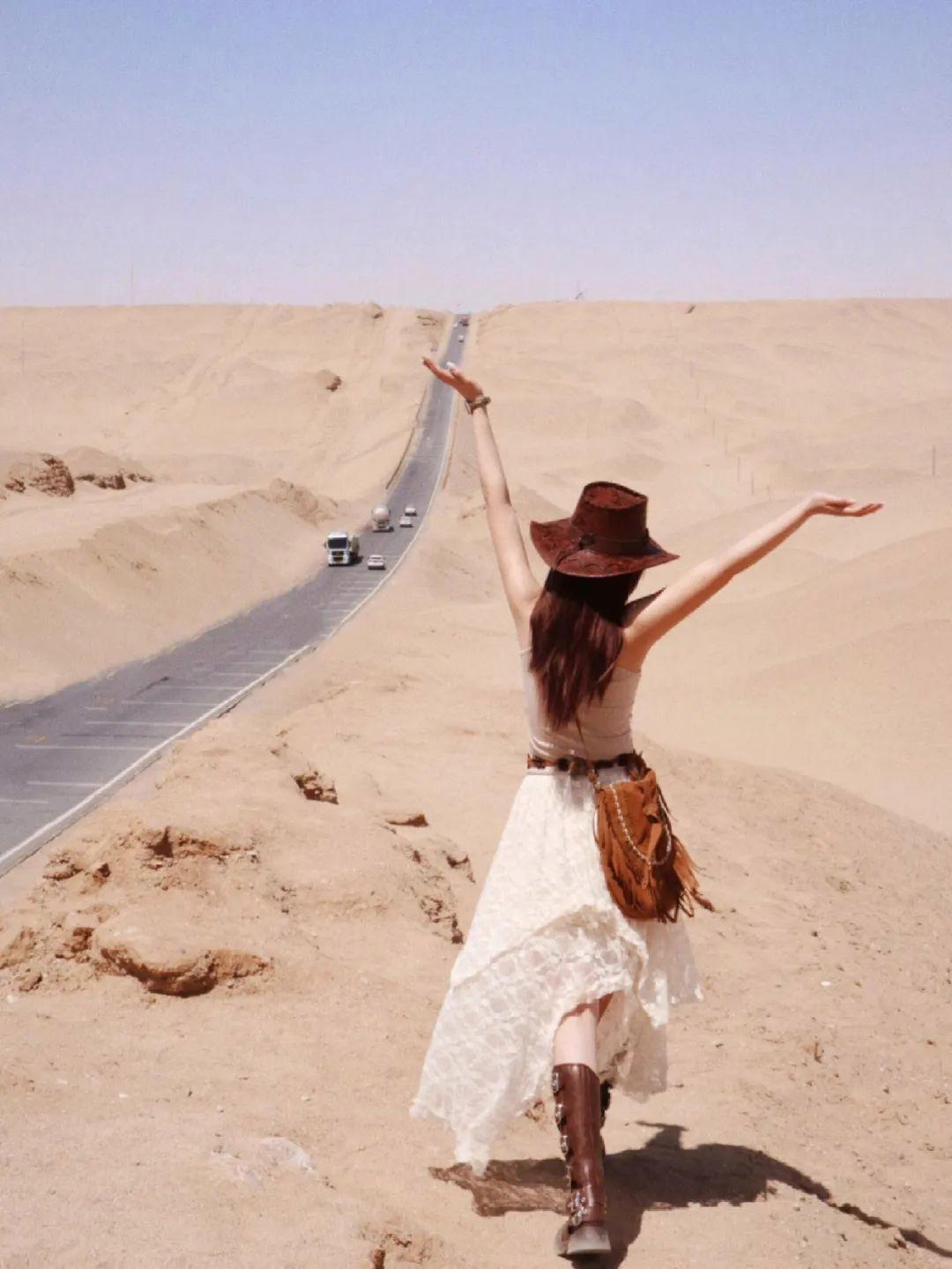 尝试一些创意的拍摄方式,比如将自己放在画面的前景,而让远处的风景作为背景。这种构图方式能够营造出一种视觉冲击力,让照片更具创意感和趣味性。例如,站在沙漠的边缘,将广袤的沙丘作为背景,形成一种错觉般的构图效果。