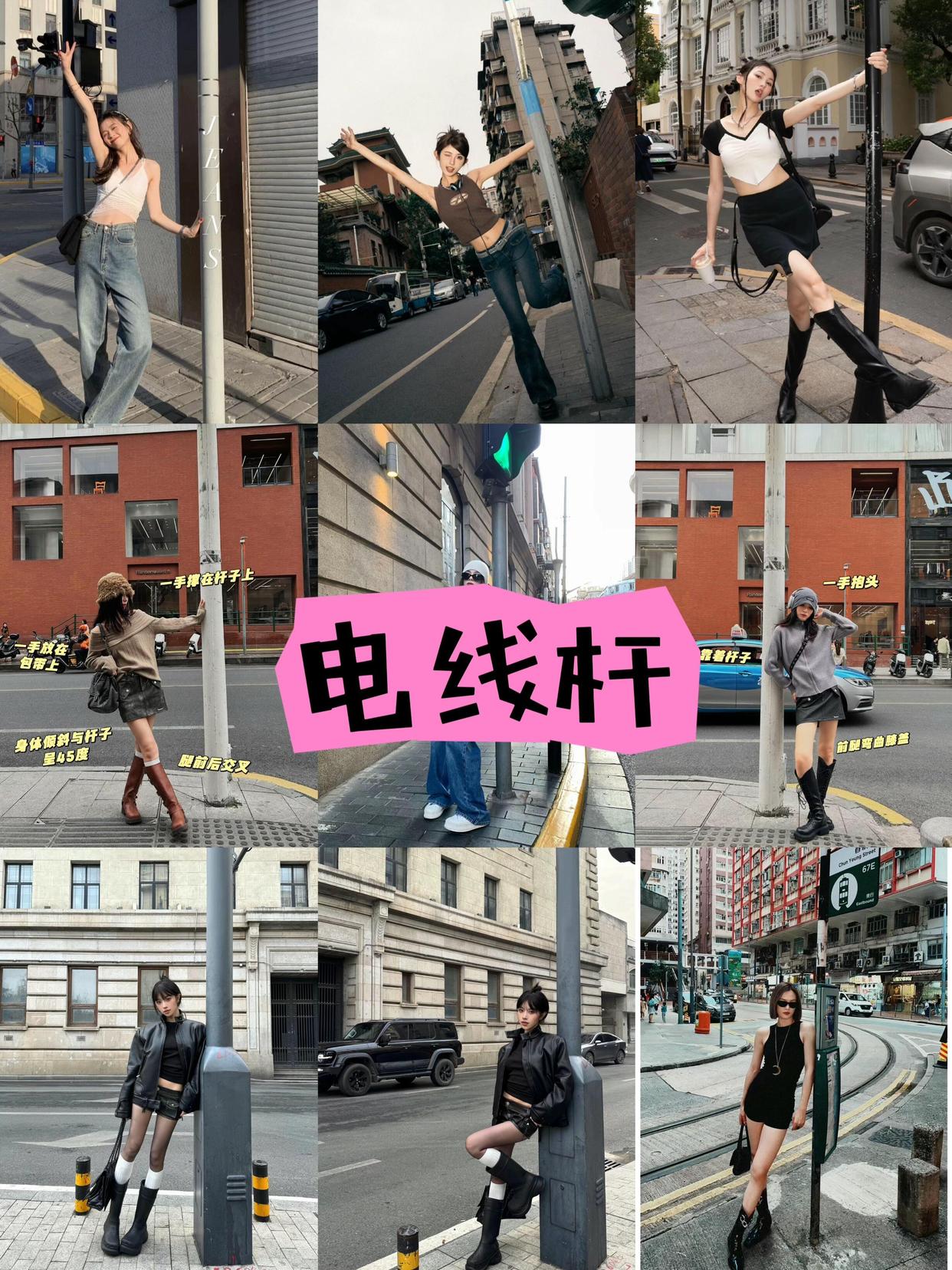 4. 手扶电线杆、靠着电线杆,动起来摆 pose