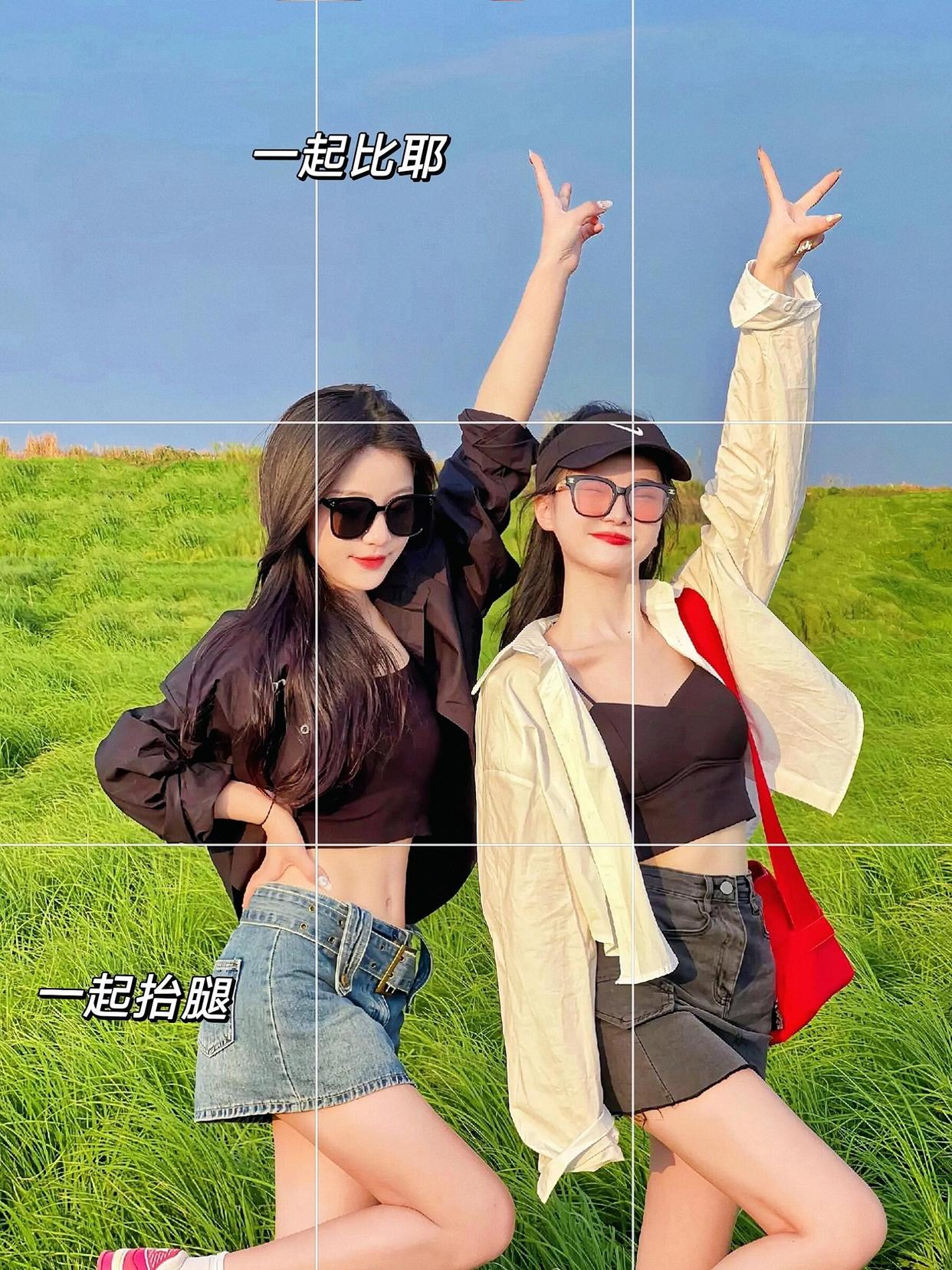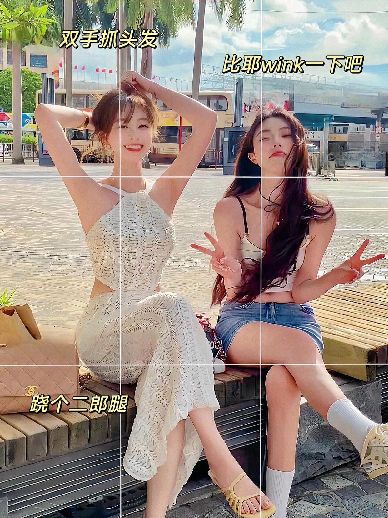 和姐妹一起跷二郎腿拍照是一个非常经典的姿势。你们可以选择一个人双手抓头发笑,另一个人比个“耶”并且Wink一下。这种姿势不仅可以展现你们的默契,还能通过不同的表情和动作来增加照片的趣味性和动感。