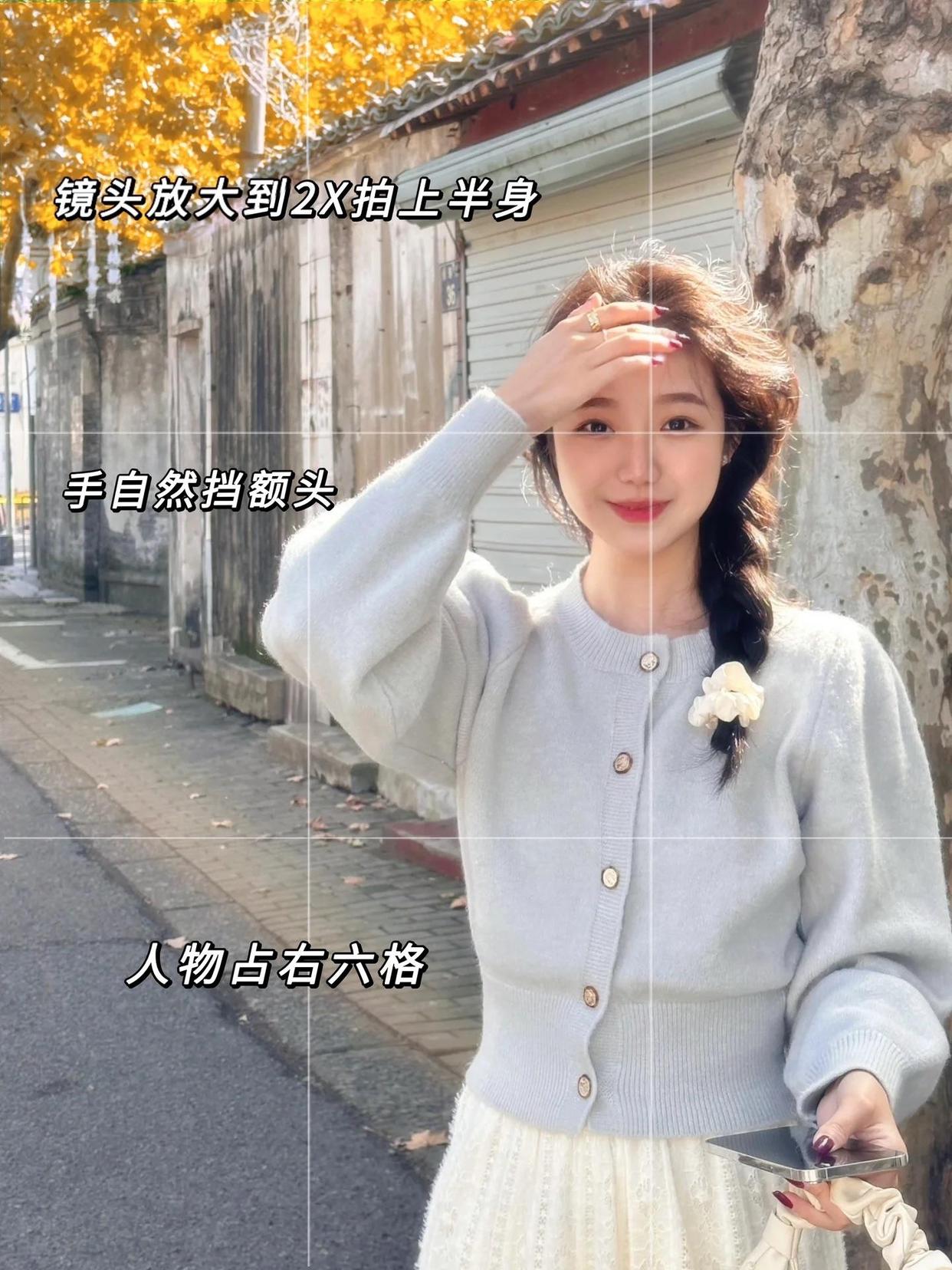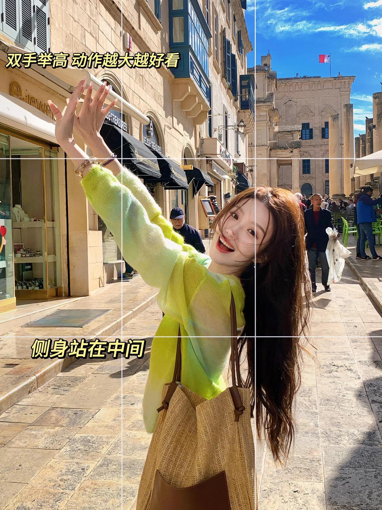 拍全身照的时候,如何拍照显高显瘦是大家最关心的问题,这种情况便能举起手拍,借助抬手的姿势,让举起的手成为身高的一部分,从而起到拉长身材比例的视觉效果。