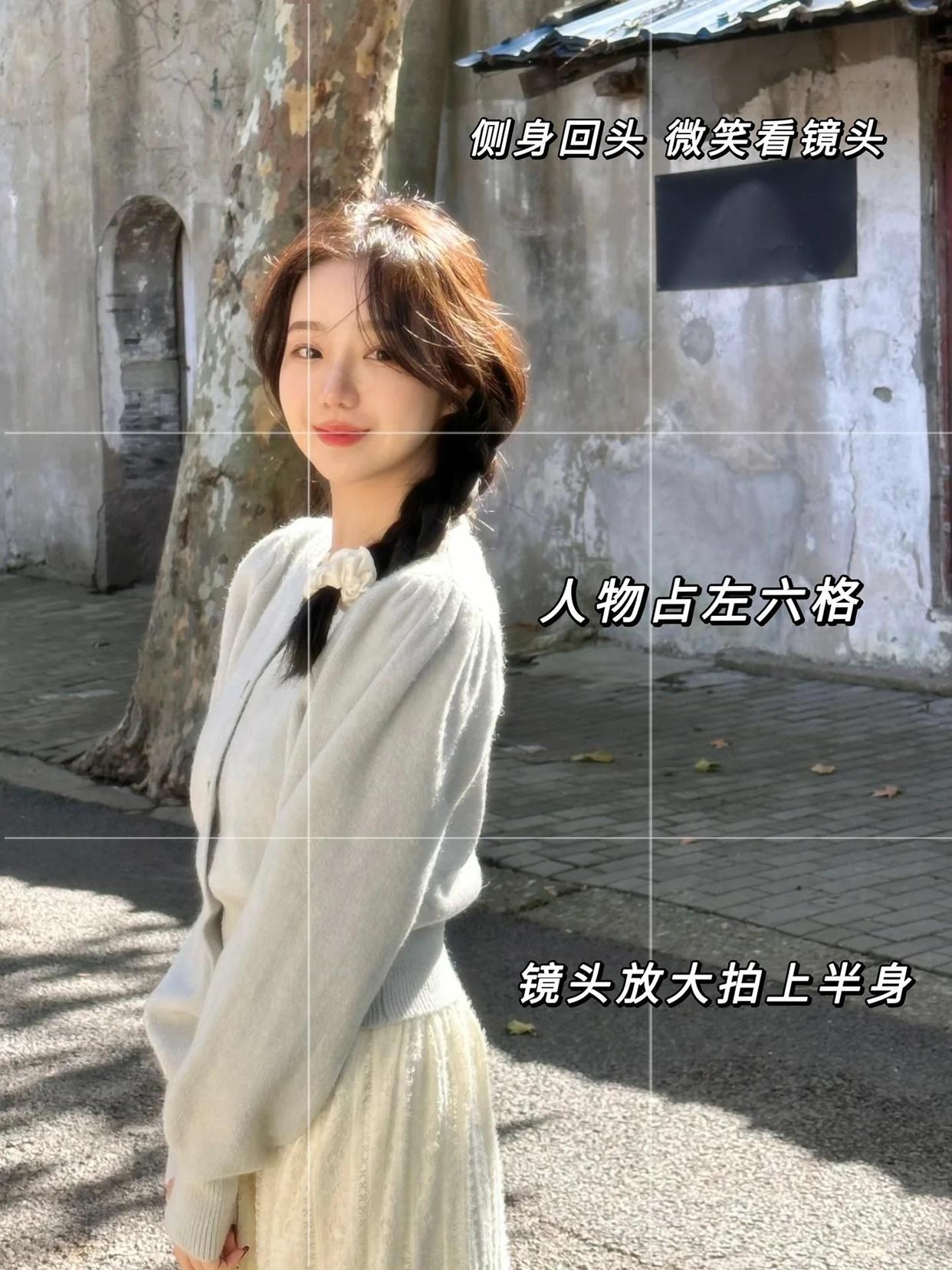 像下面的模特一般,在拍照的瞬间转身回眸看向镜头,用相机定格此刻的表情和姿势,捕捉模特不经意的美。