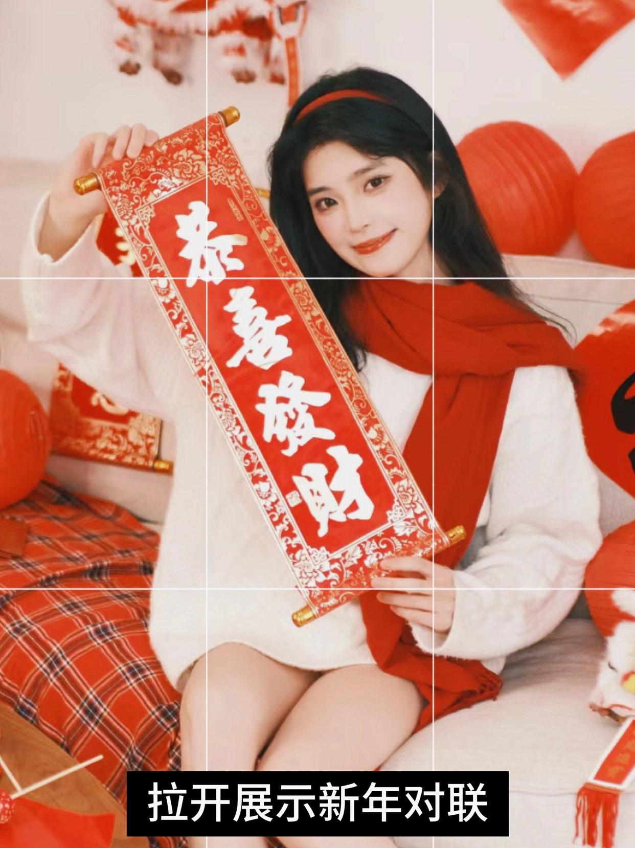 挑选一副新年对联,用双手将对联展示在镜头前。这个姿势可以坐着拍,双手伸展开,头歪一歪,向大家展示美丽的对联。这样的姿势表达出你对新年的期待与祝福,给照片增添几分庄重和祥和的感觉。