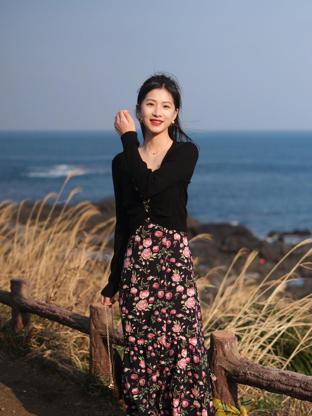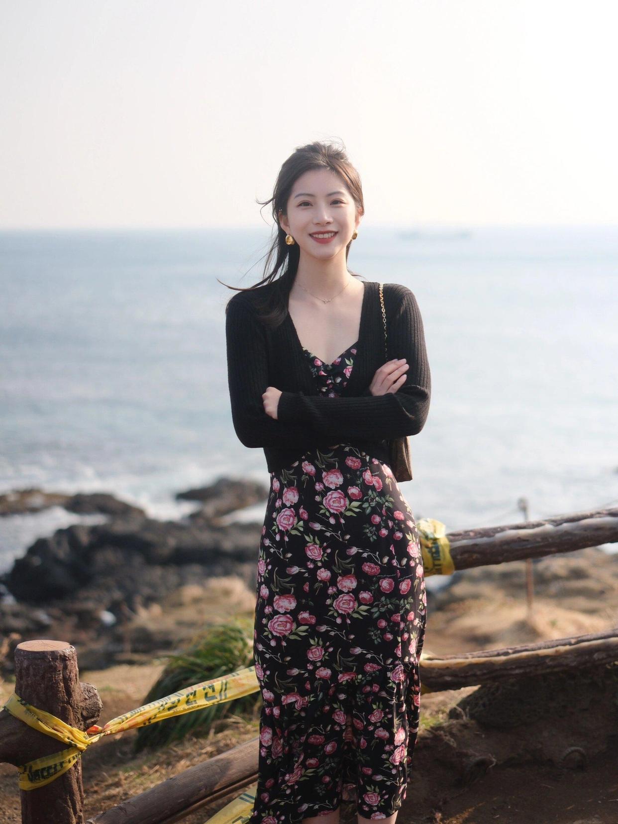 外出拍照,有一些方便的地方,可以让自己靠着拍,比如一些栏杆,一些建筑物,像下面的女士一样,背景好看,然后靠着栏杆,歪歪头微笑的看这镜头,这样姿态很自然,表情也好看,拍出来很气质很优雅漂亮。