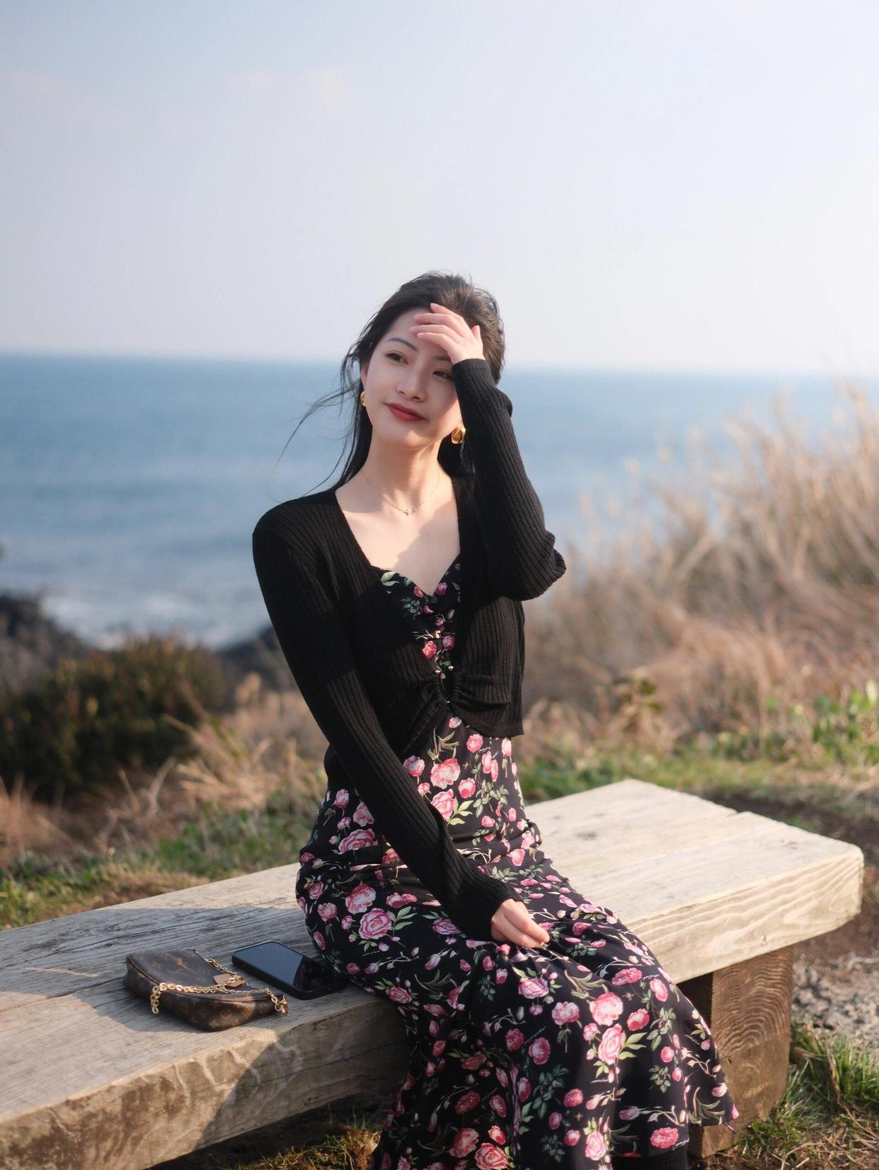在外拍照,可以侧坐着拍,然后一手自然放在自己的两腿间,一手抬起来摆拍一个遮阳光的姿势,眼神可以看向一边,这样就算阳光很强也不会眯眯眼,还能有明暗结合,拍出来特别的自然漂亮,优雅大方。