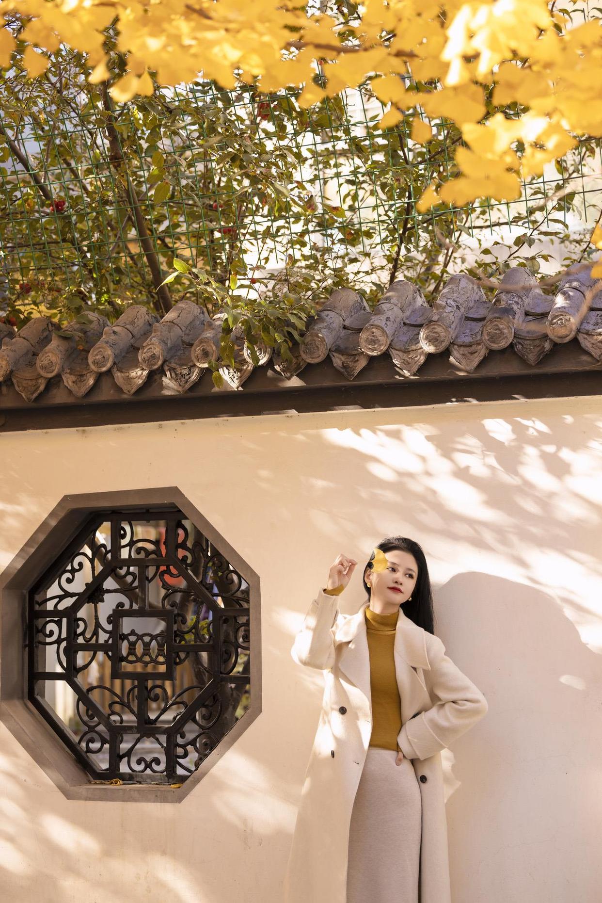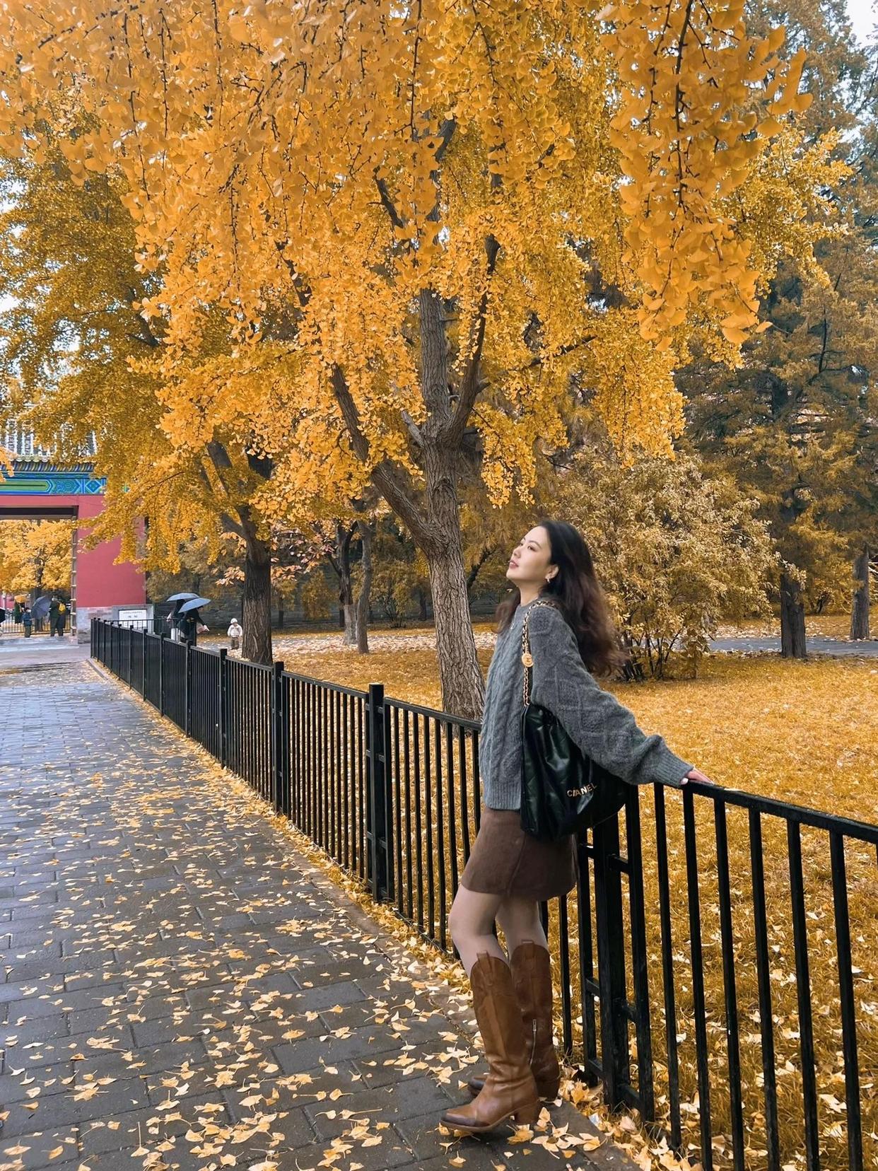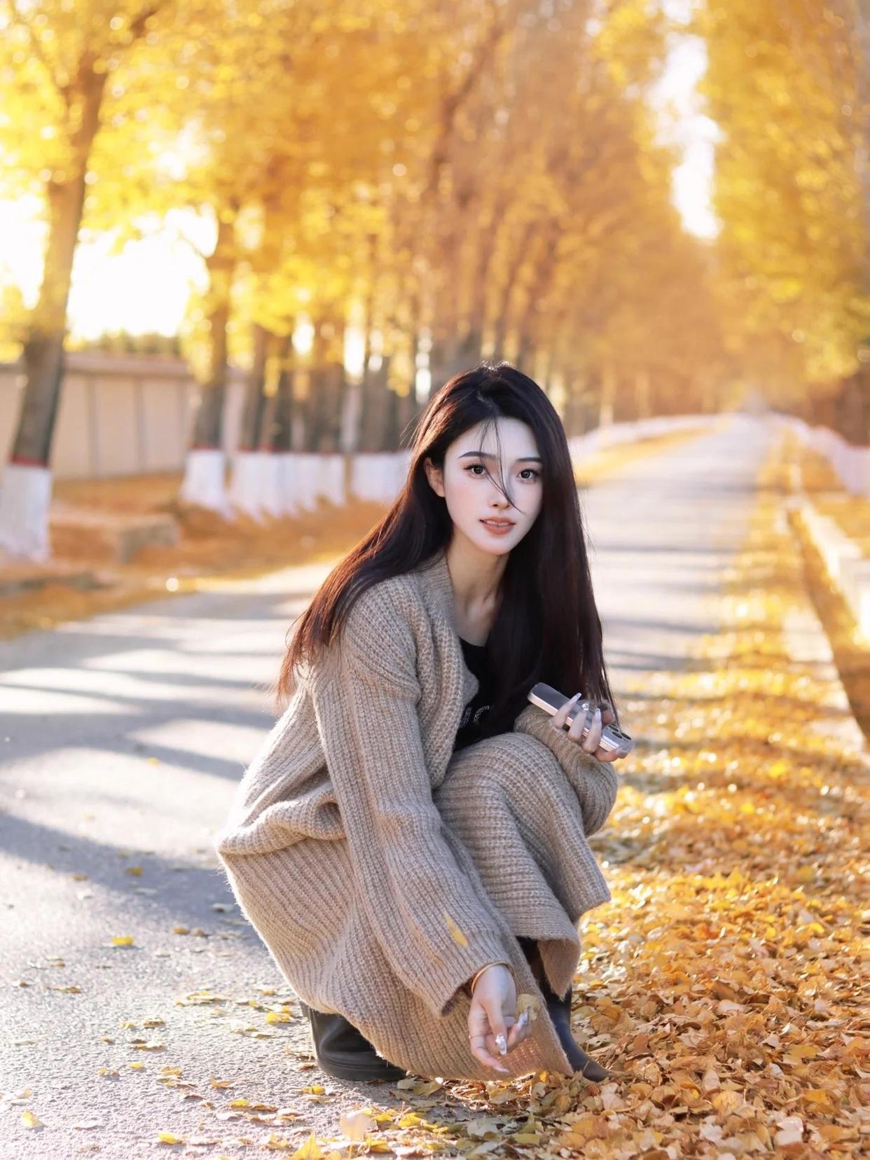想要拍照自然漂亮,解决手姿是很关键的一环,拿些实用的道具在手上,可以是地上的落叶、落花,和环境互动起来,既加强了人像的表现力,也缓解了手部的尴尬,出片漂亮,主题也更突出。