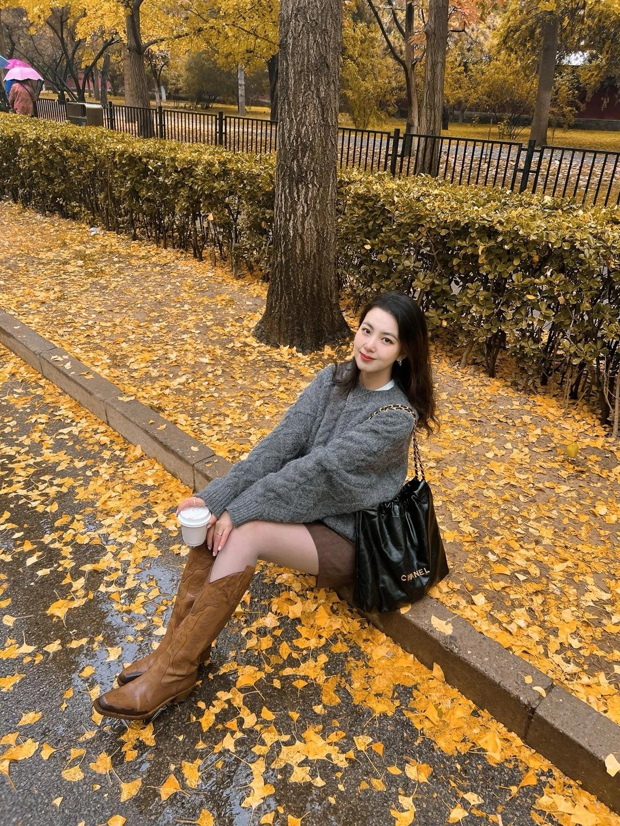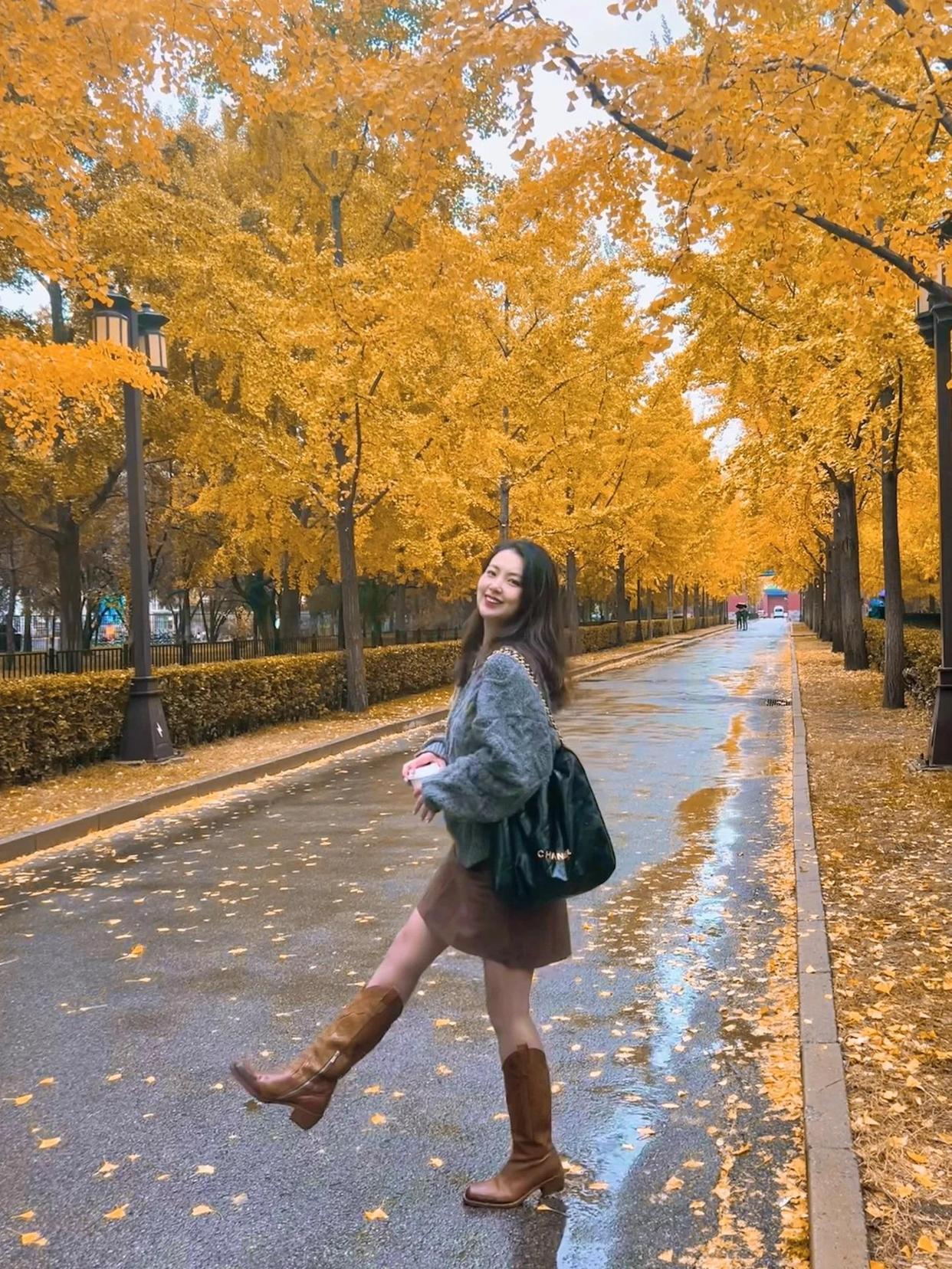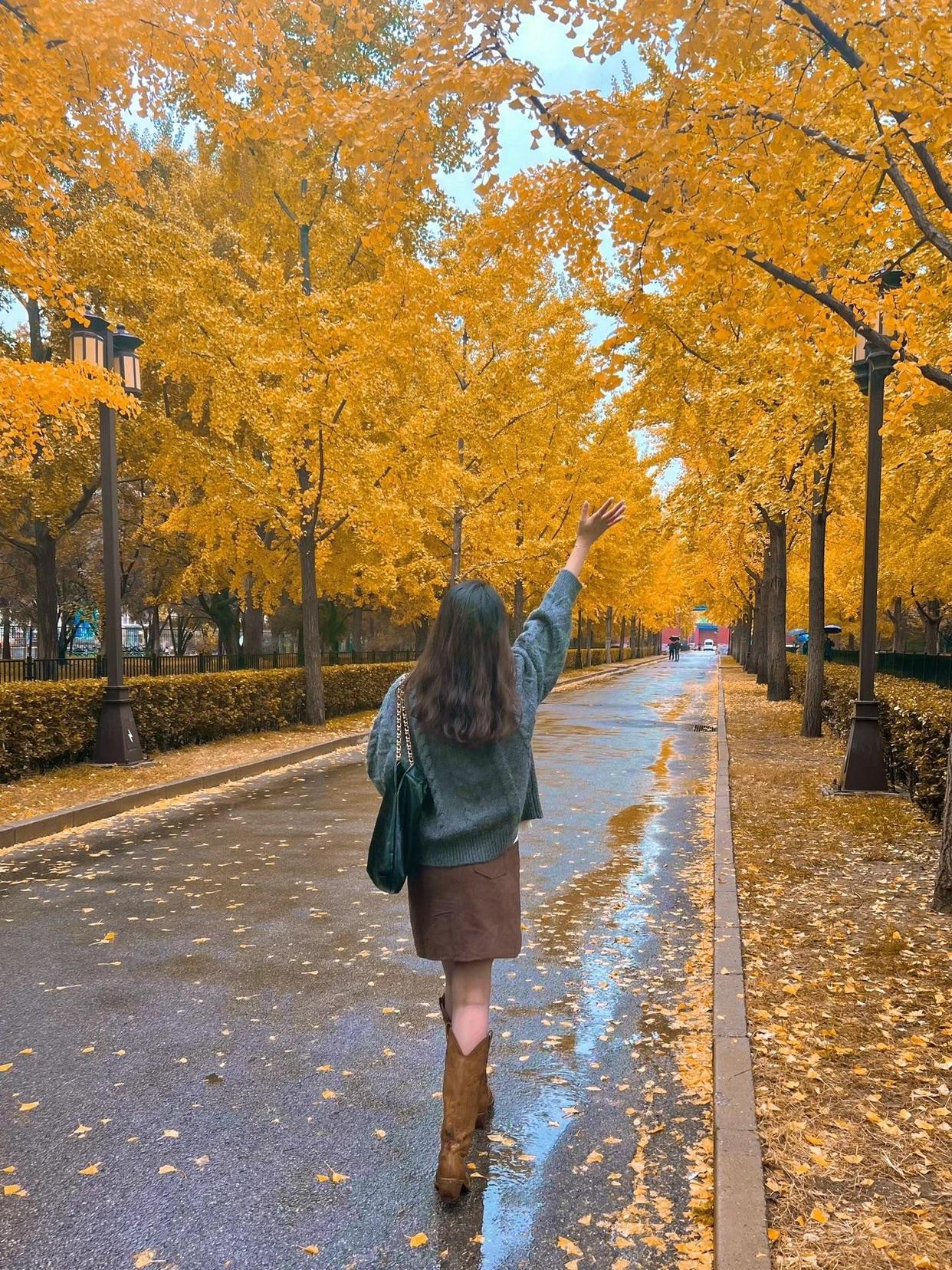 想要拍照自然漂亮,解决手姿是很关键的一环,拿些实用的道具在手上,可以是地上的落叶、落花,和环境互动起来,既加强了人像的表现力,也缓解了手部的尴尬,出片漂亮,主题也更突出。