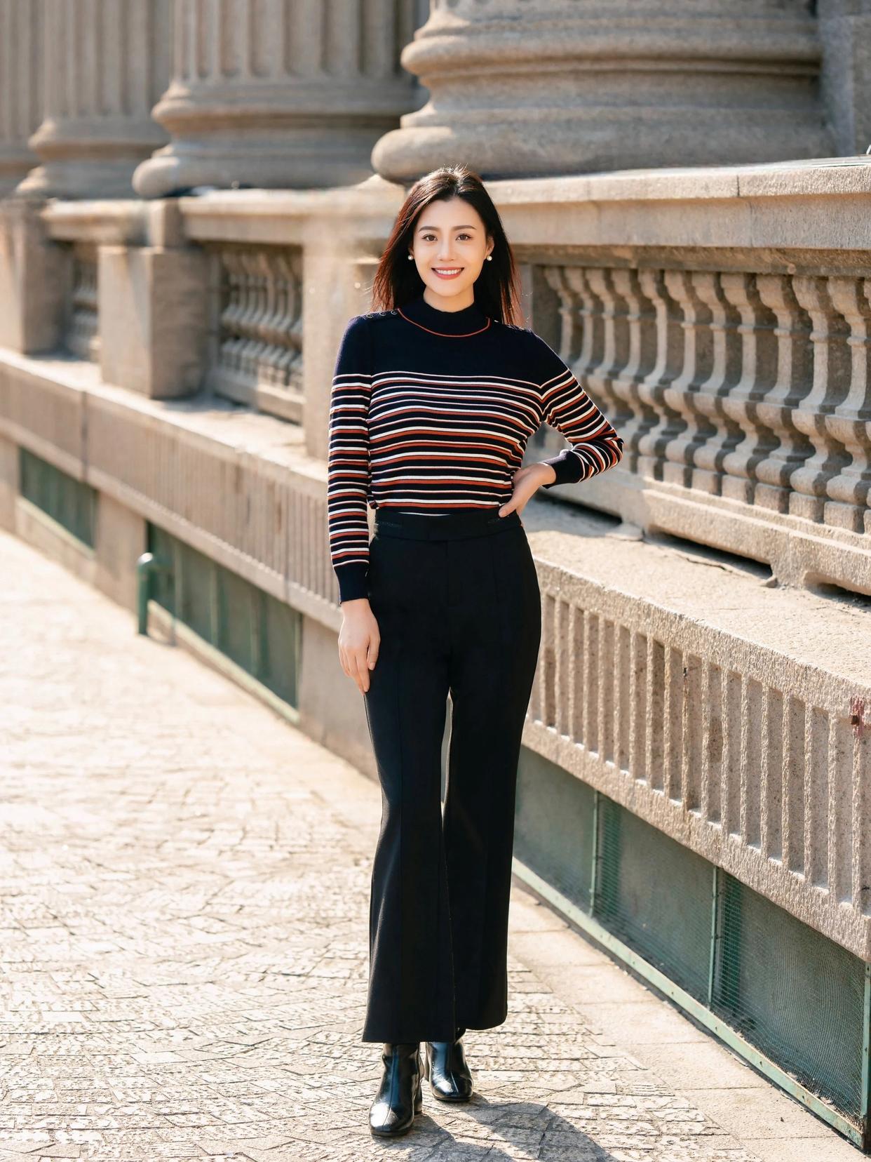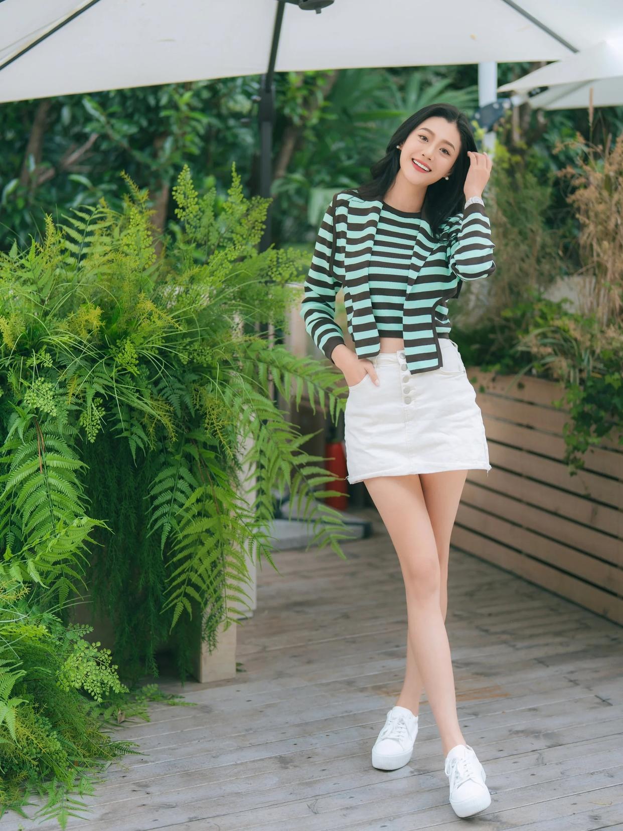 腿姿方面,双腿交叉站很是推荐,既能较好地避开腿型不好的问题,又能拍出气质优雅的感觉。