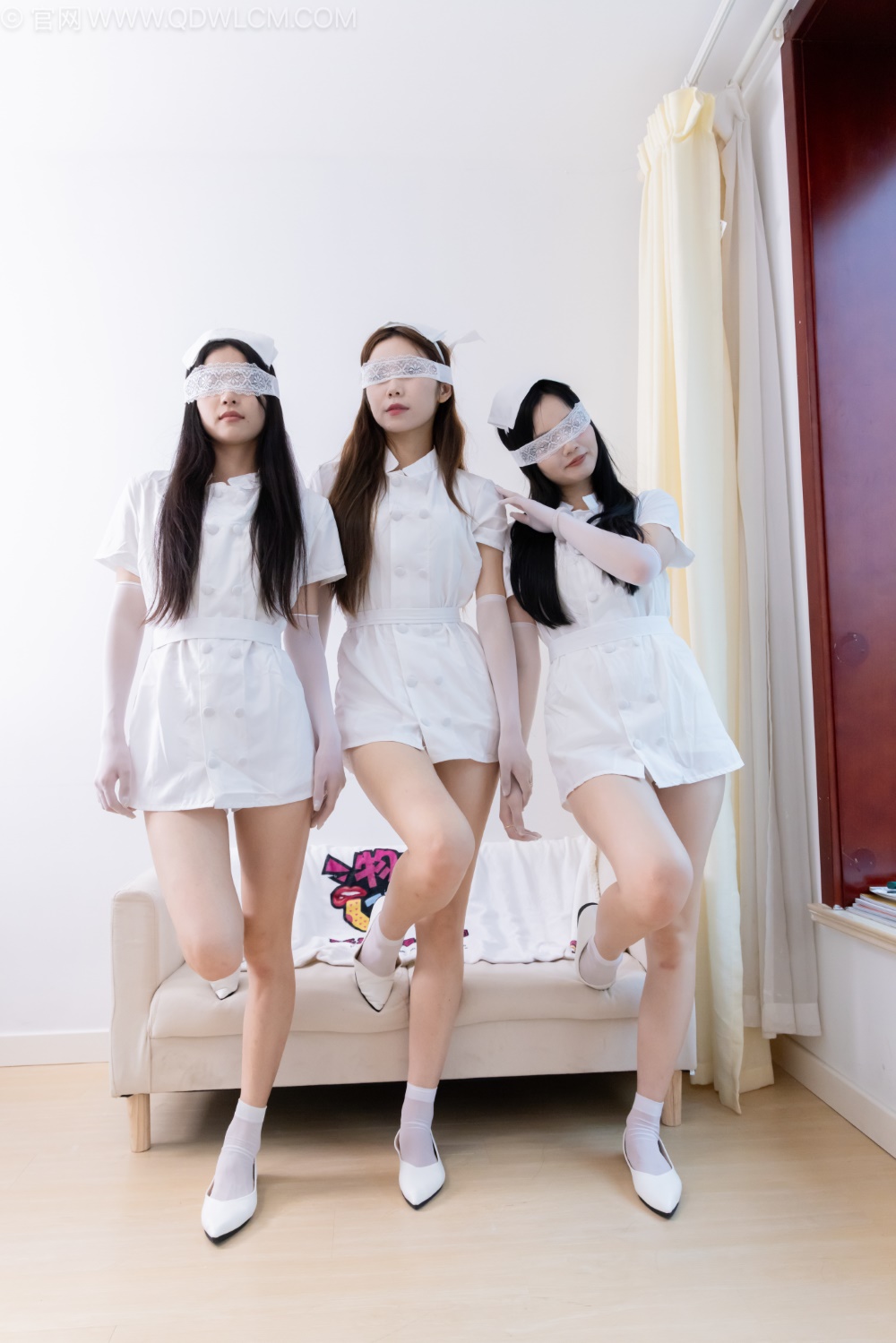 主题:平底鞋、短白丝、护士服、白丝手套白丝眼罩、穿鞋脚对脚斗脚互动剧情