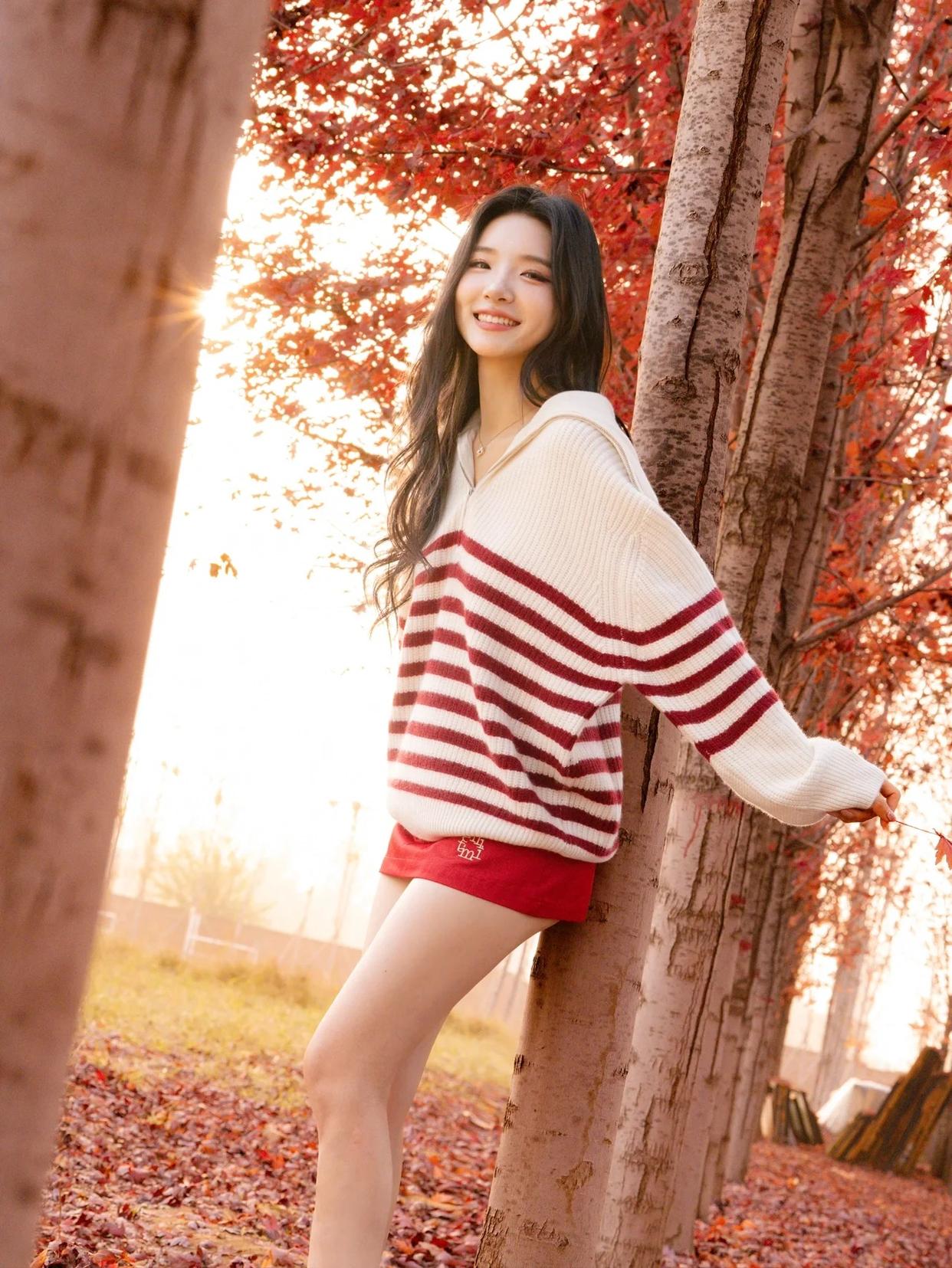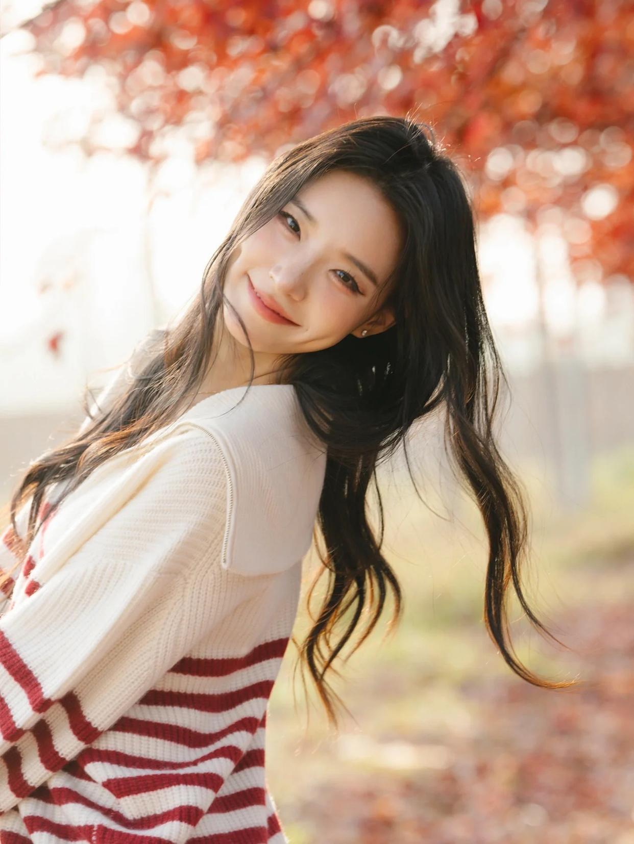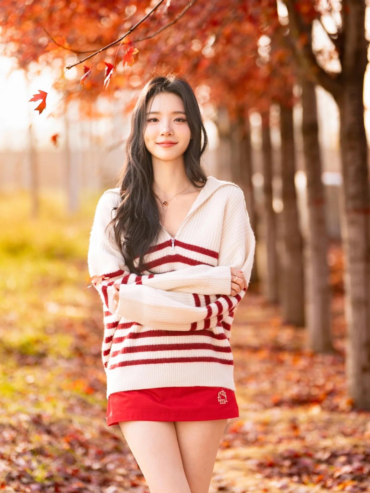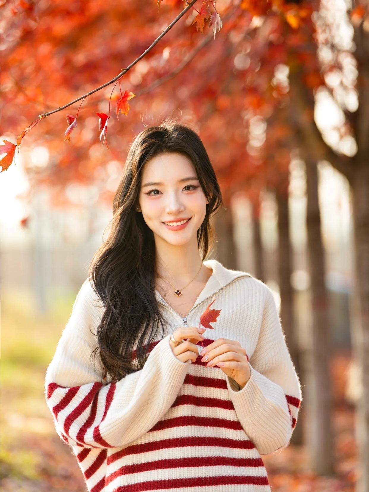 以半身的方式拍照,可以尝试从画面的一侧探出身来,假装和镜头有所互动,这样拍出的照片,视觉上的冲击力更强,同时,也能拍出活力感和模特良好的表现力,拍出美美的枫叶林人像不成难题。