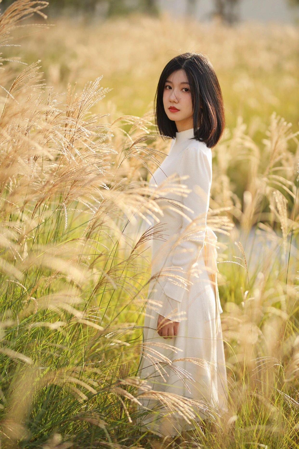 参考下面的女生,侧身站着,然后回头,让摄影师抓着最自然的一瞬间,这个拍照姿势没难度,只要假装不知道镜头,回眸一看,撩人的眼神,简约不做作,拍照很好看。