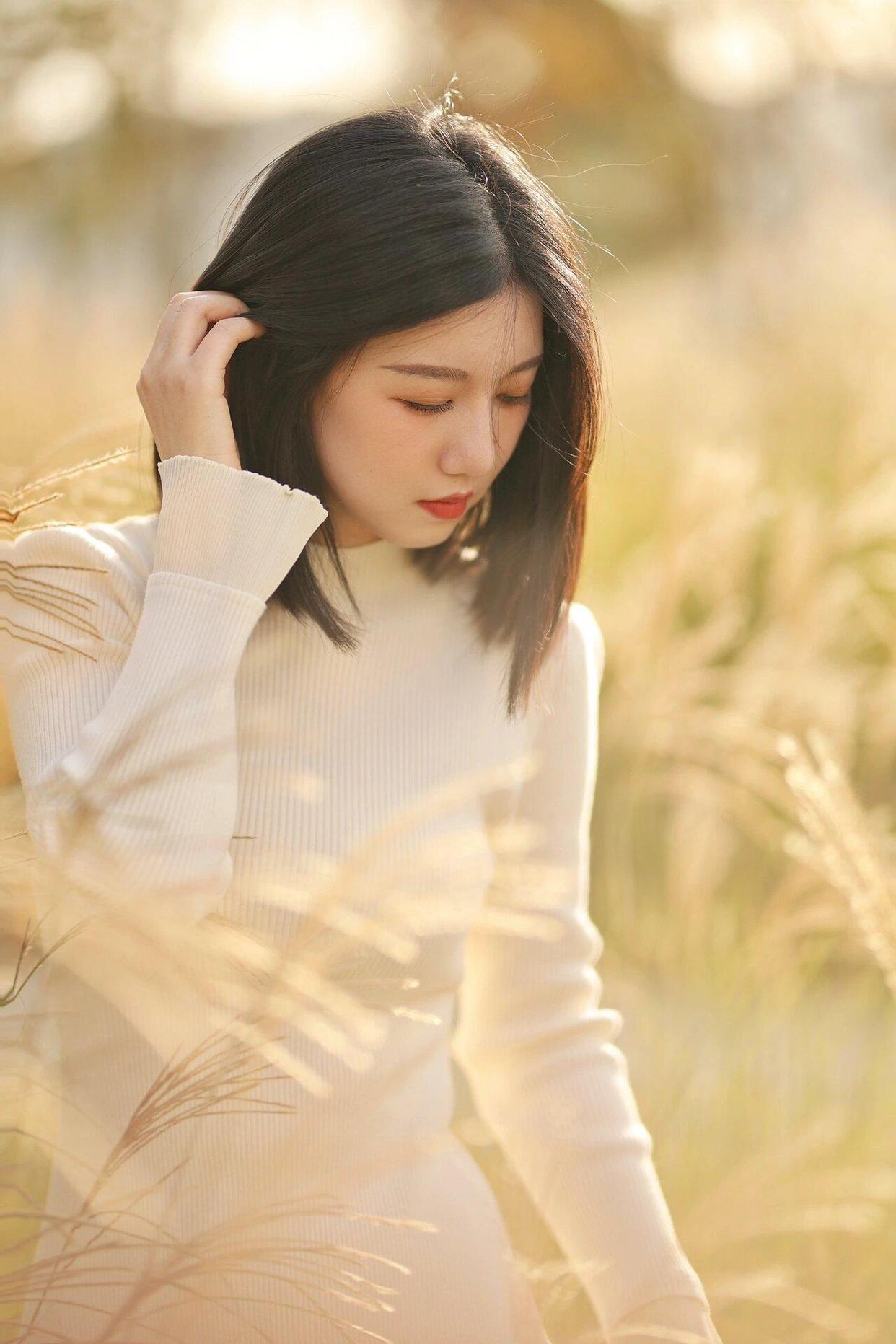直接面对镜头,会无所适从,这时候可以尝试摆拍侧身姿势,简单来一个转头看着镜头,手不知道怎么放的话,可以拿道具、撩头发。这样简约就能拍出最美侧颜照,简单拍出各种美。