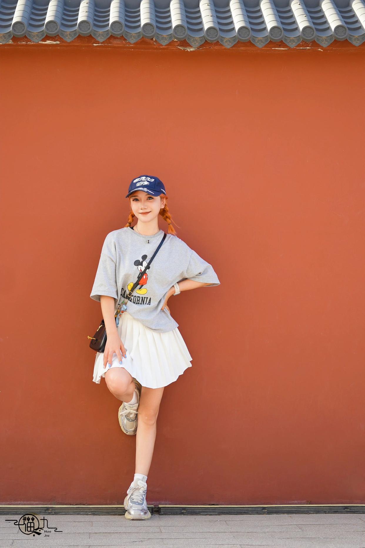 倚靠物体照是全身照中比较有趣的拍照姿势之一。在拍照时,可以找一个物体依靠着,比如公交站牌、栏杆、路灯等。可以身体靠着、手靠着,身体稍微倾斜,很好的突出身体的曲线美。