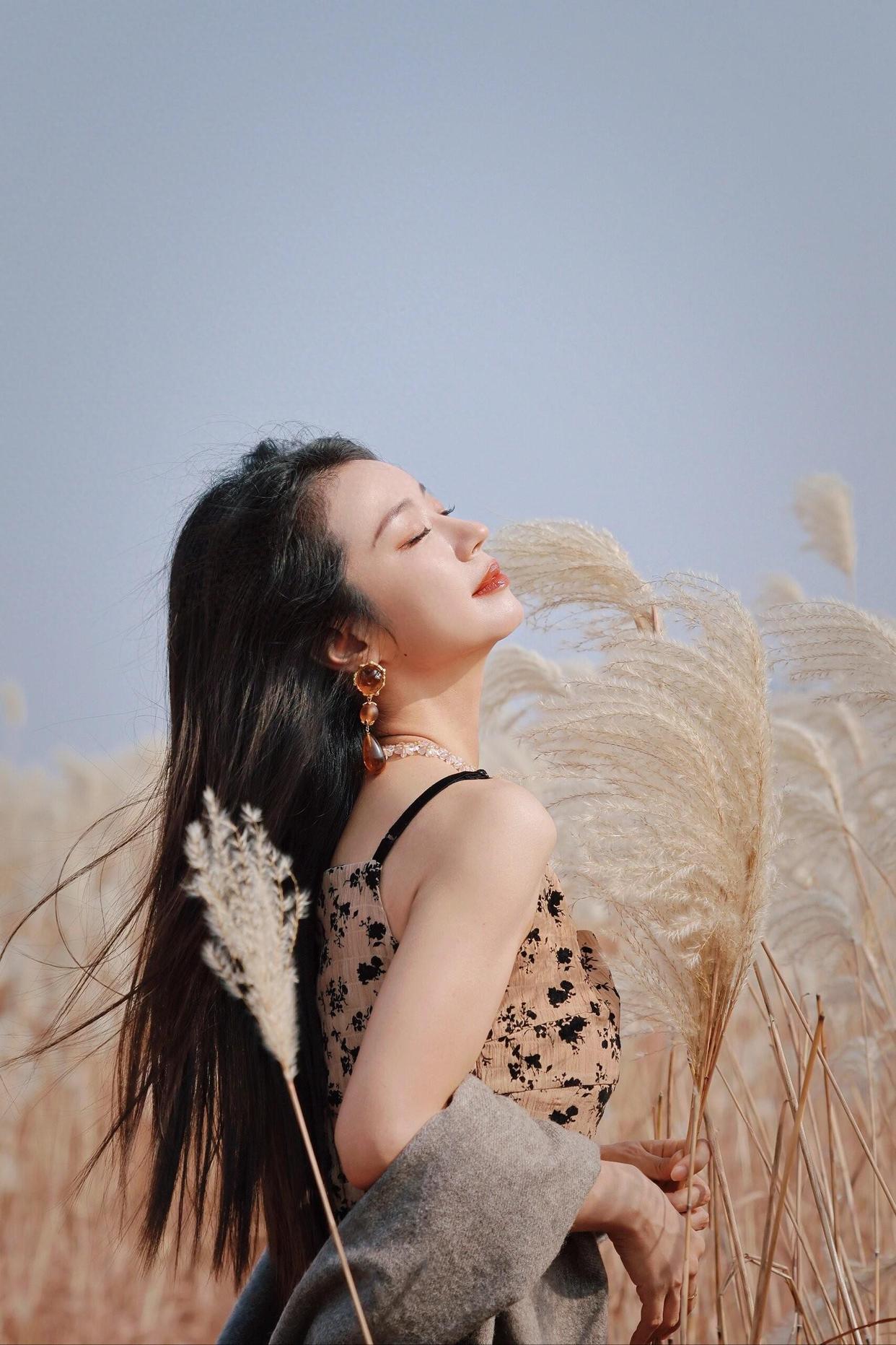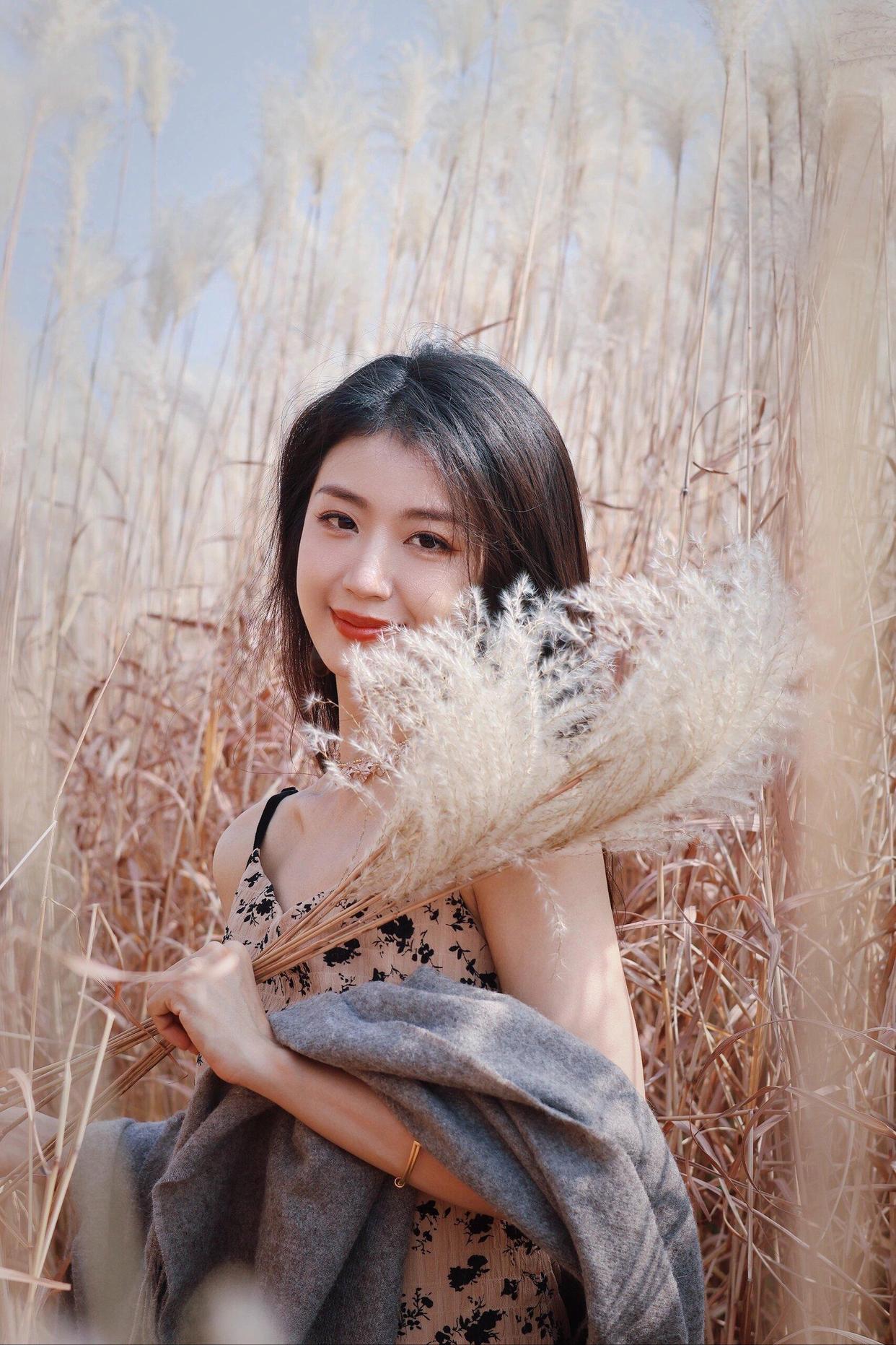 站在芦苇中,用左手轻轻撩起头发,头部轻微偏向一侧,面带微笑。这样的姿势不仅漂亮,还能在芦苇拍照中增添一份柔美和优雅。