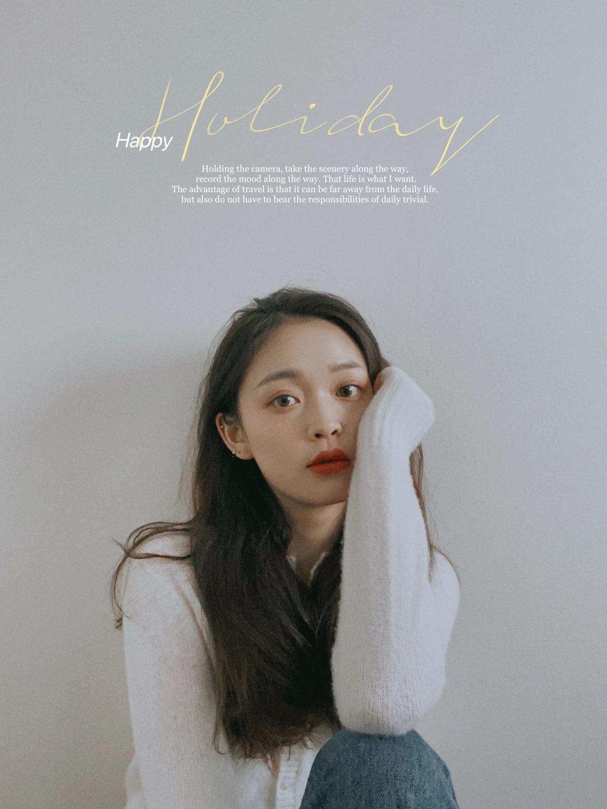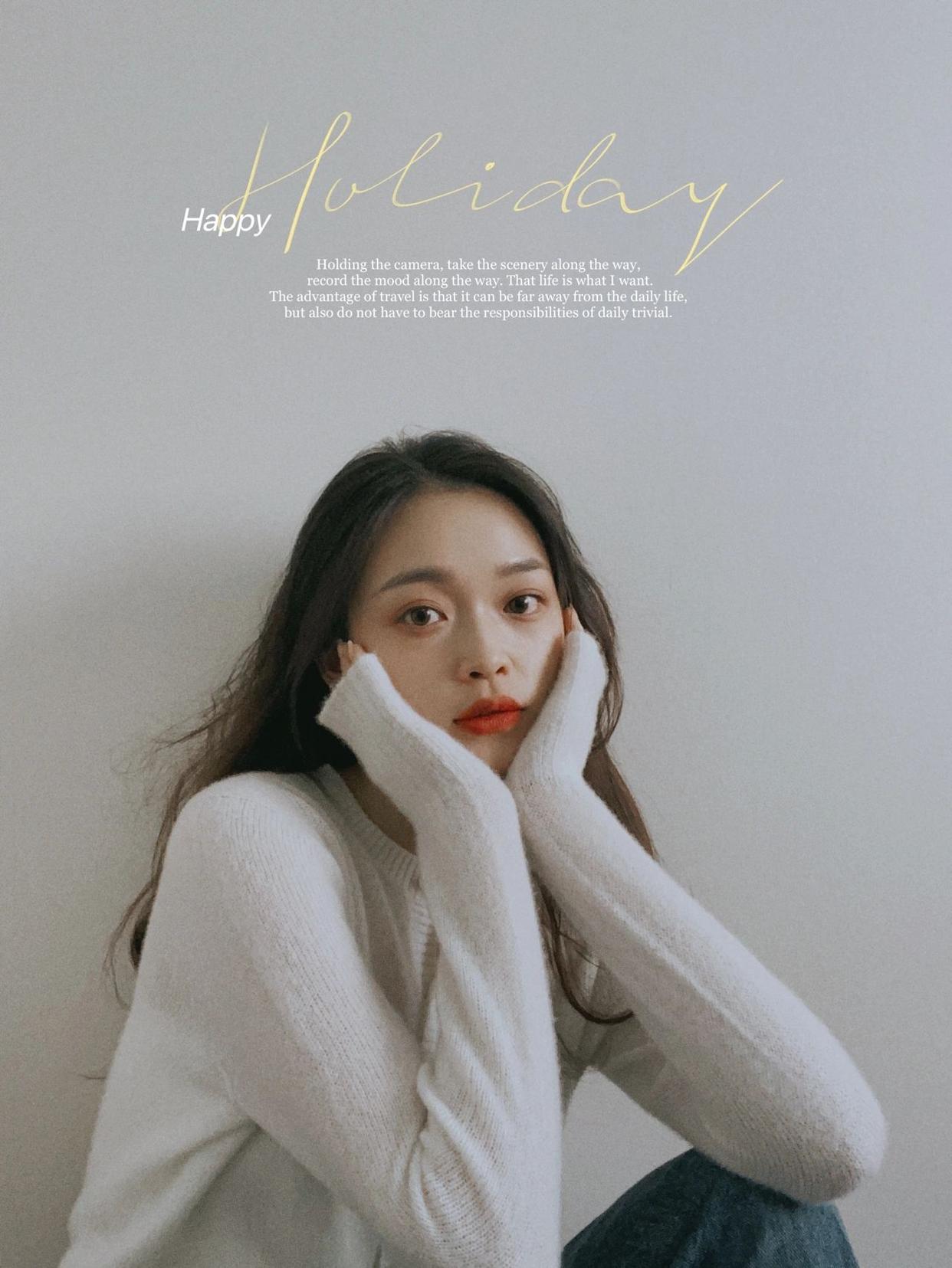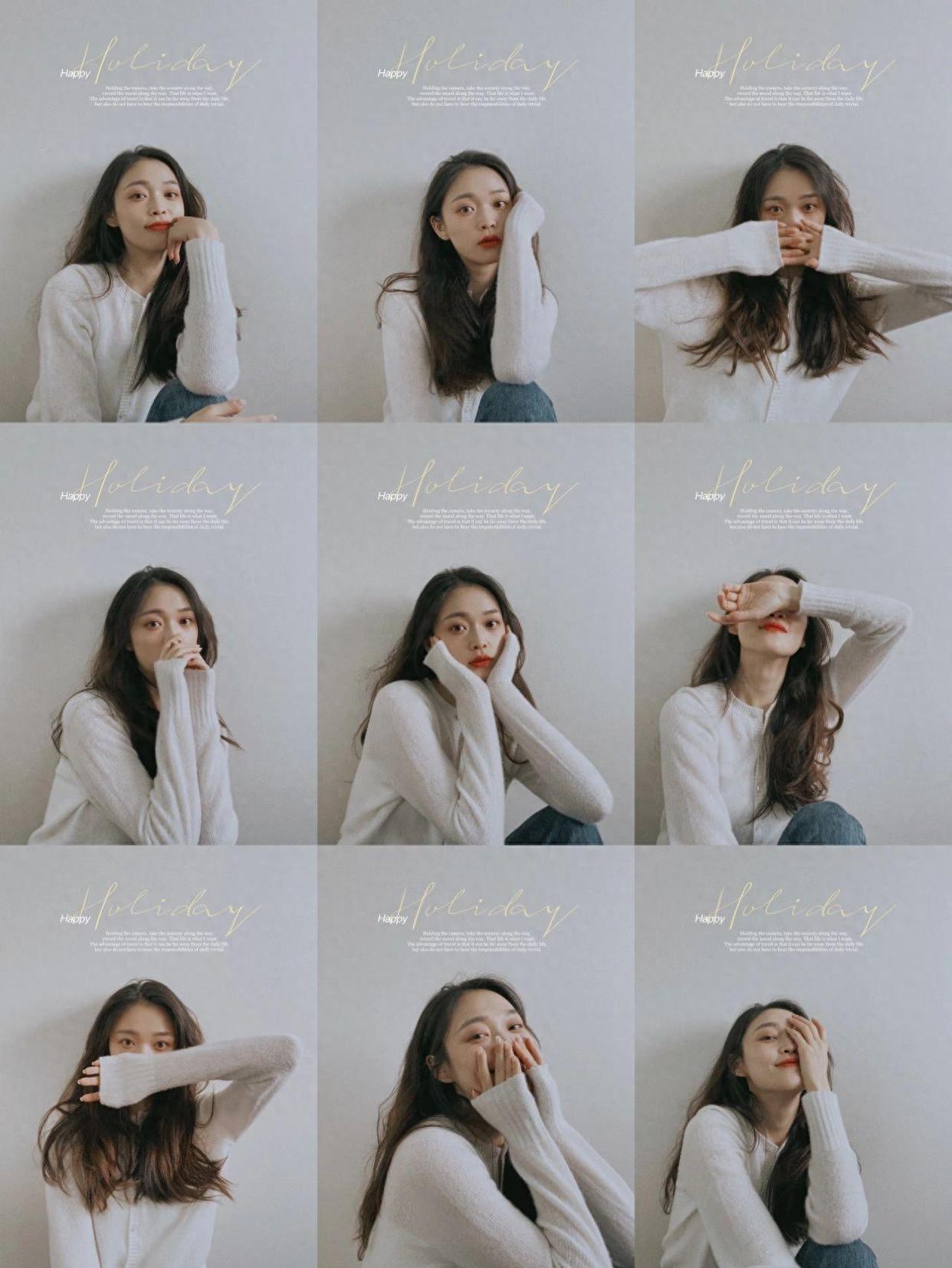双手捧脸这个姿势,配合呆萌看镜头,不止可以让脸看起来小小的,还能解决手的尴尬问题,一举两得,零成本就能拍,让你自拍照又瘦又自然。