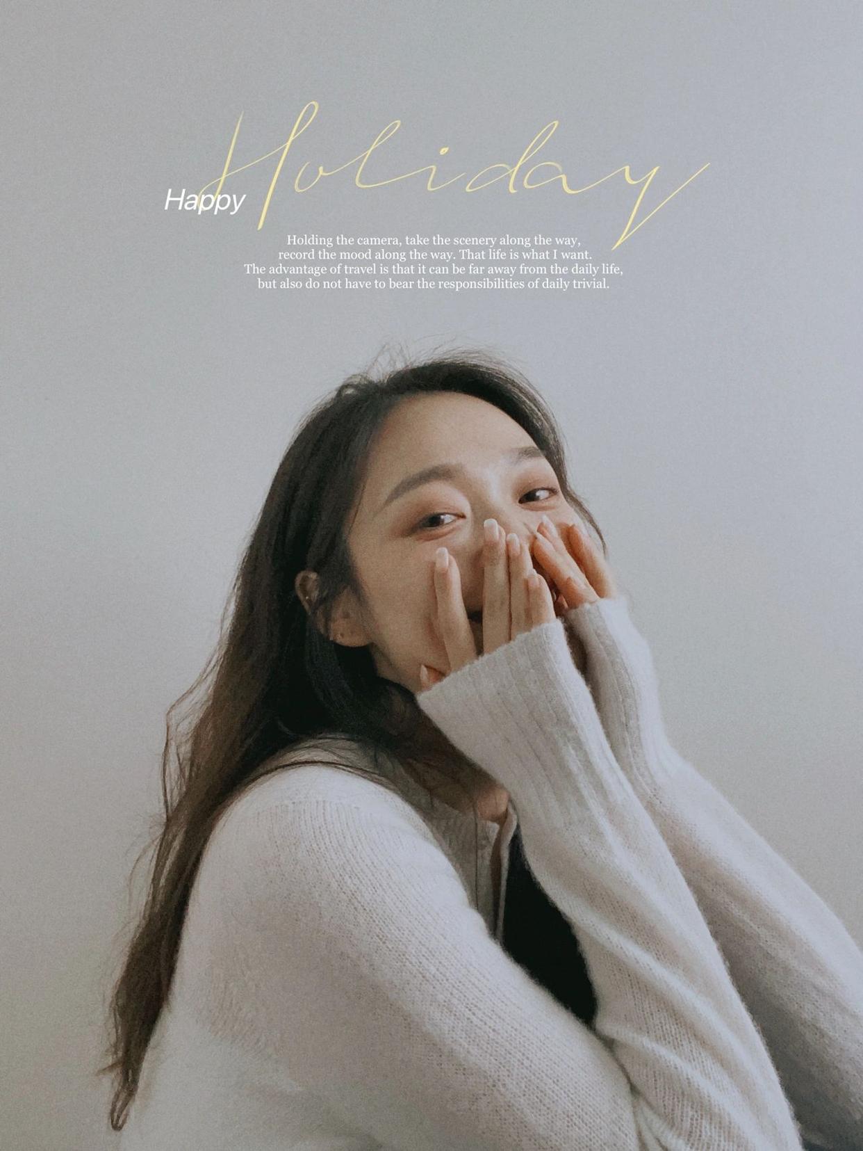 自拍的时候,可以营造情绪的感觉,下面这个双手互握放嘴边的拍照姿势,这个姿势,可以让你看起来很温柔,也是自拍出氛围感的姿势之一,很自然好看。