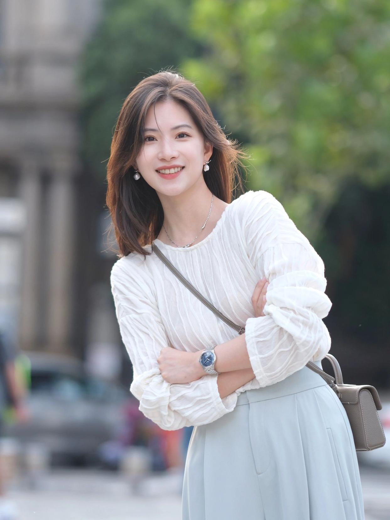 正面大方微笑是最基本也是最常用的拍照姿势。它能展示出我们最迷人的一面,让人感到友善和亲切。在拍照时,可以让自己正面大方看着镜头,保持微笑,注意眼神要自信而明亮,同时保持肩膀的放松,让照片更加大气,成片发圈特别好看。