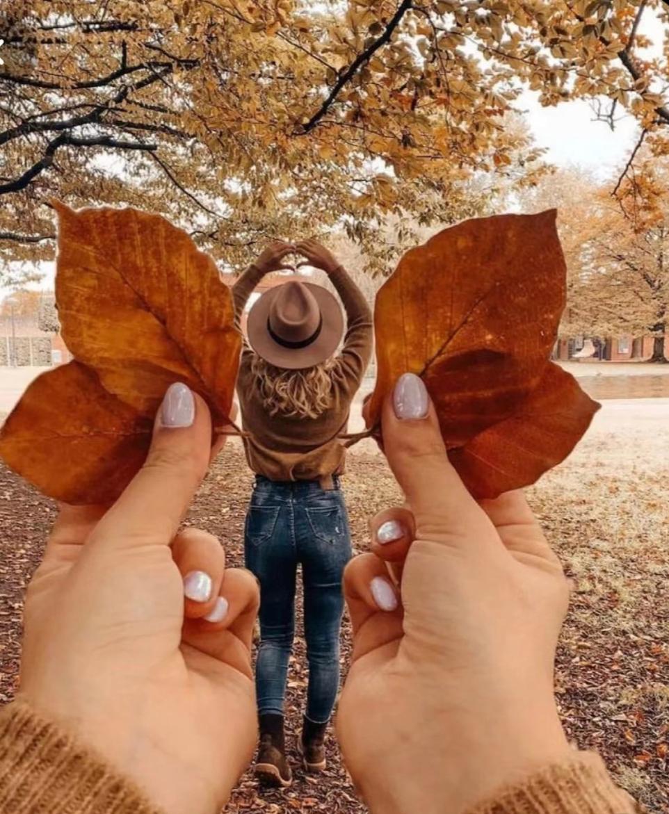 把秋叶人像拍得更生动有趣,大家也可以借助错位的拍法拍一组很有创意的照片,比如,将秋叶挖出一个洞,通过洞去拍人物,用落叶将人物框住,突出主体的同时也很好看。