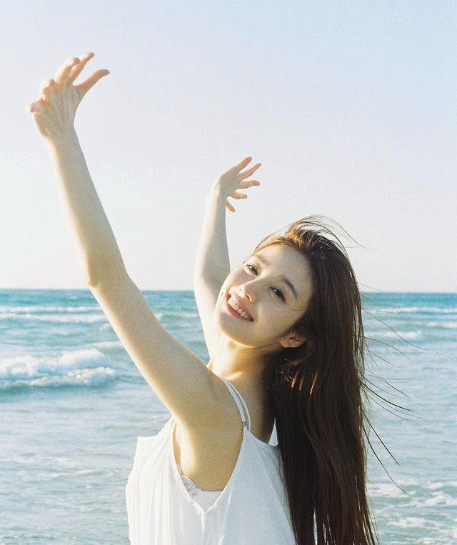 到海边游玩本来就是一件很值得开心的事情,不要吝啬你的笑容,向着镜头展现自己活泼、开朗的一面,弯腰对镜笑,和镜头来个亲切的互动,这种毫无攻击性的笑容真的很感染人。