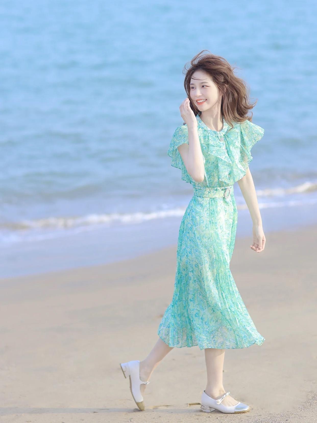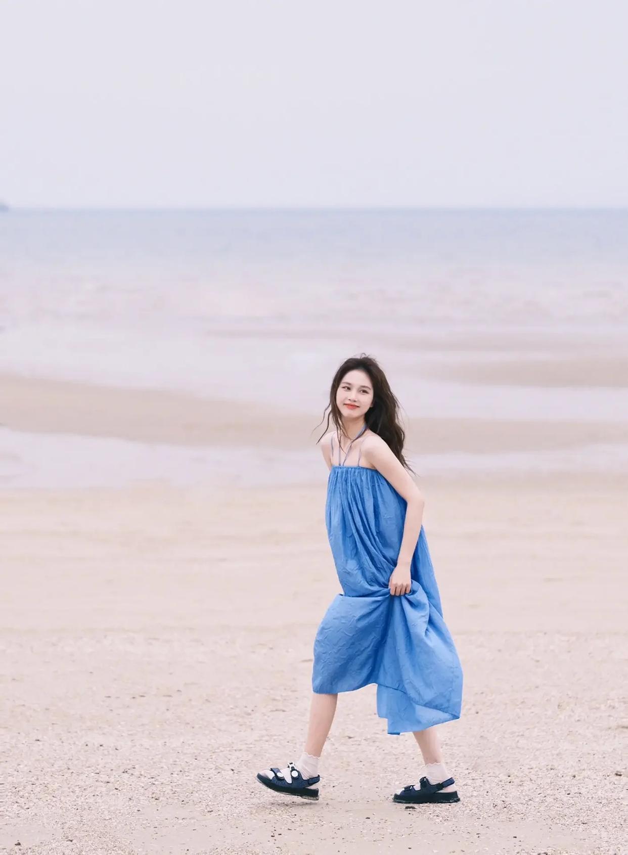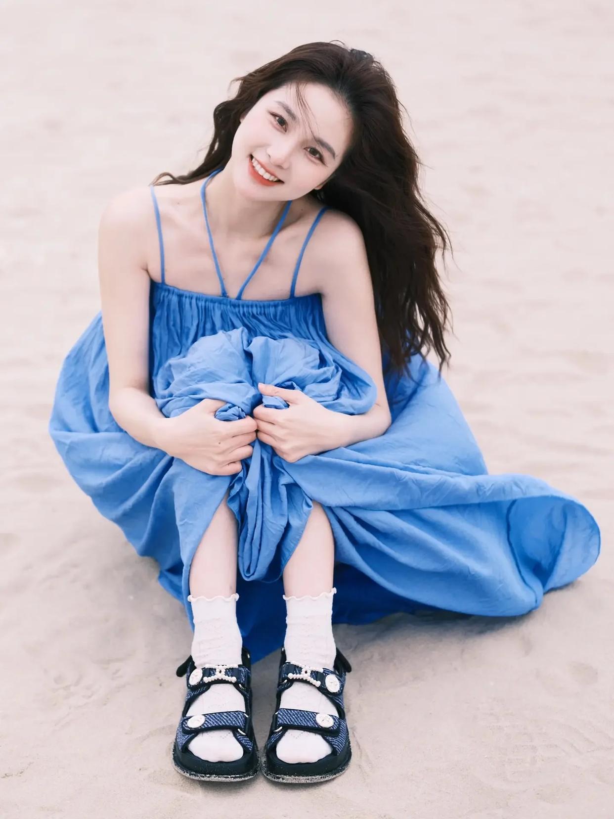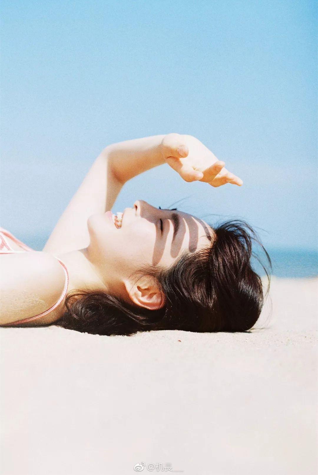 对于表现力有限的模特,刚开始拍照的时候,先尝试一些能让自己放松下来的姿势,比如安静的坐在沙滩或者海边,让摄影师从侧前方或者上方拍摄,带点俯拍的机位就很美了。