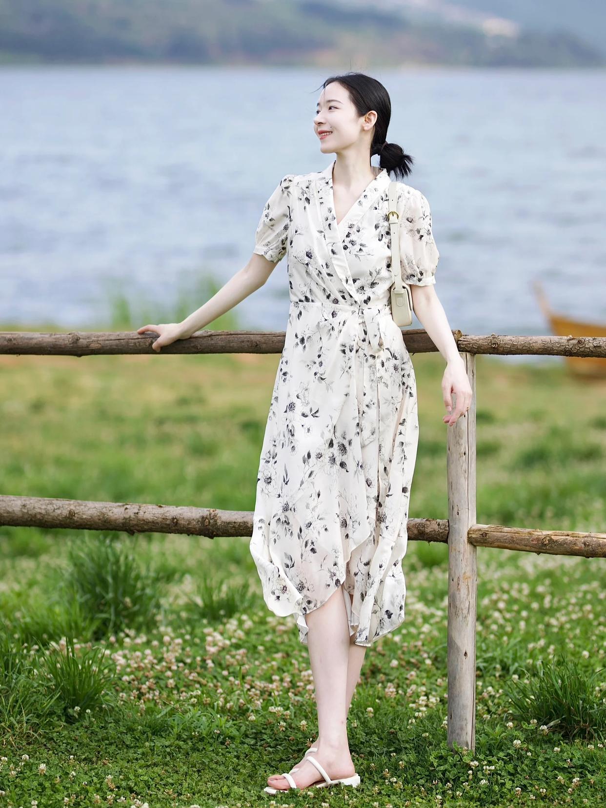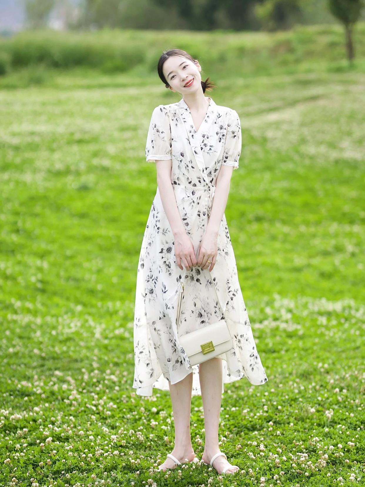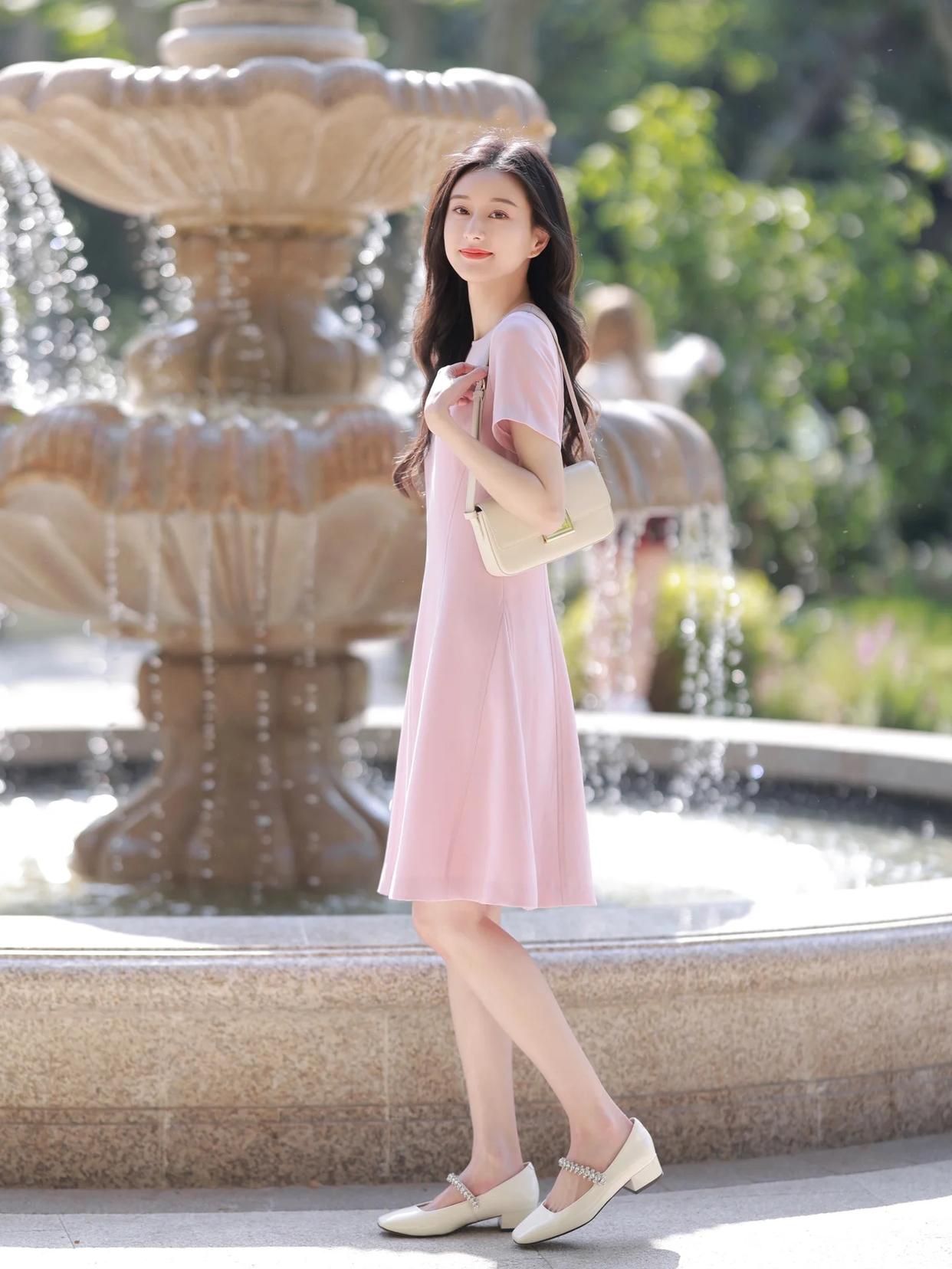 交叉腿站的姿势很优雅知性,尤其是在穿裙子拍照的时候可以多使用,较好的避开腿粗腿型不好看等问题,出片整体也更大方优雅。