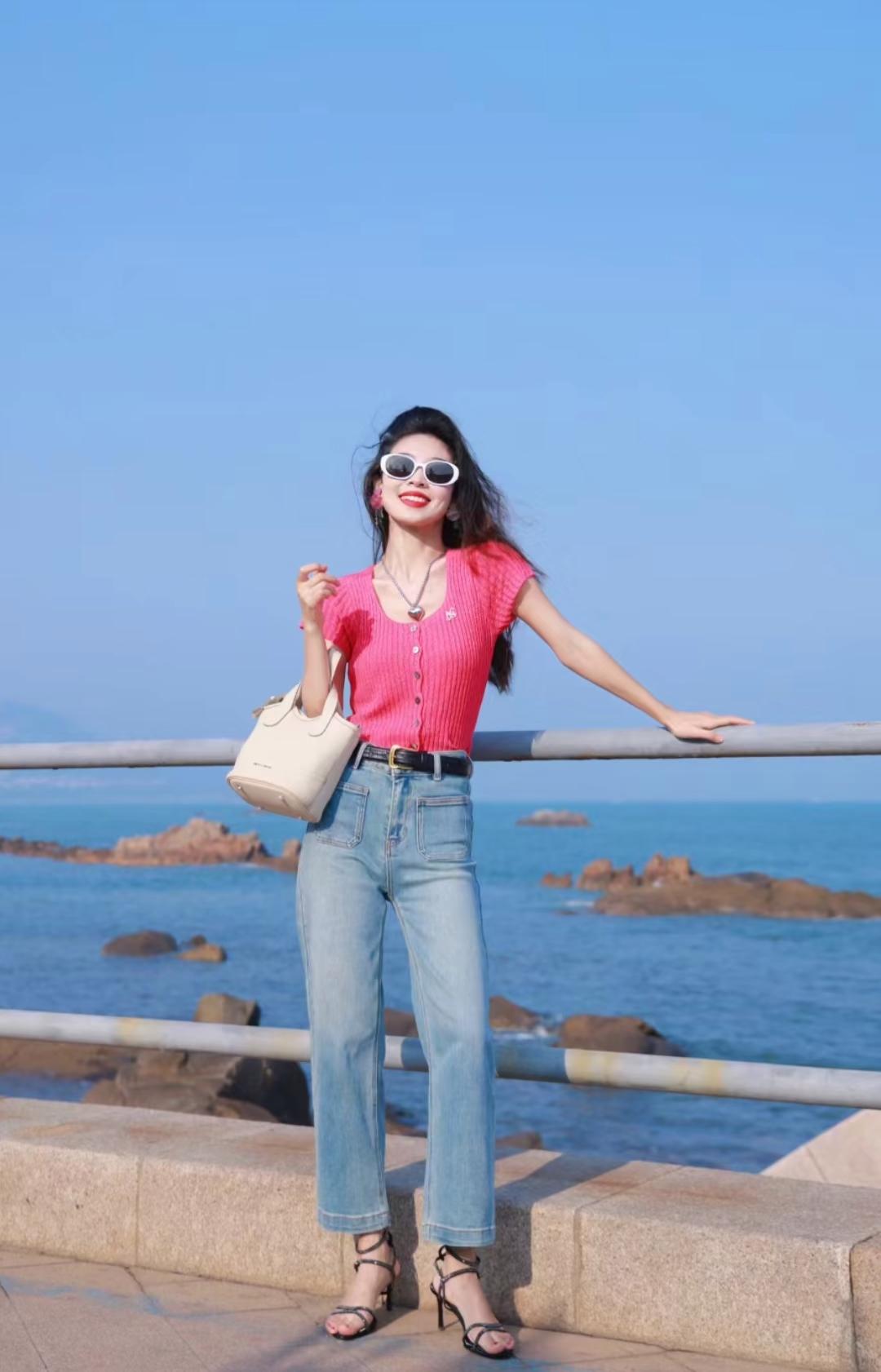 如果拍照场景中有栏杆,那么就不要错过和栏杆来个合影,单手扶着栏杆,另外一手拎包,双脚错开站,让摄影师带点俯拍的角度。