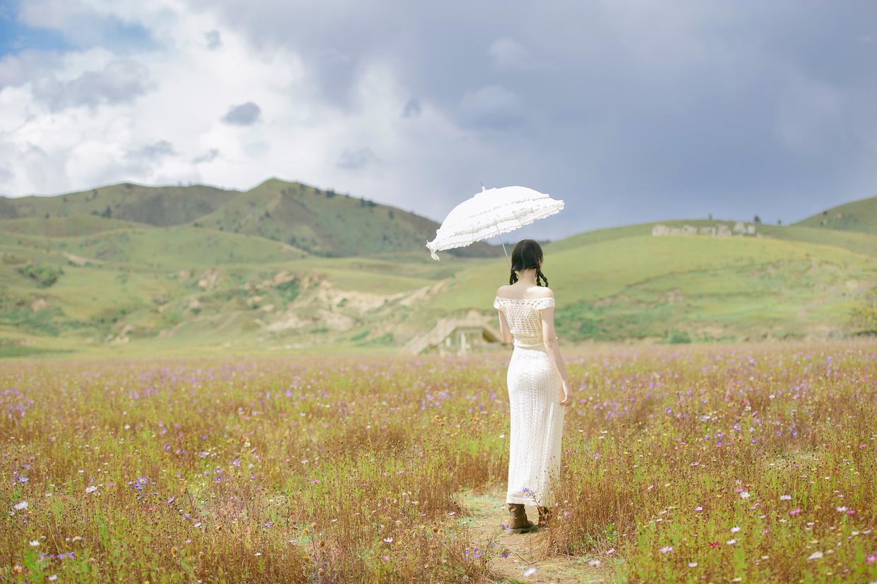在不露脸拍照的时候,要为画面制造更多的空间感和层次,让成片呈现地更加丰富,在拍外景的时候,可以借助环境的景深,把人物放在全景下。
