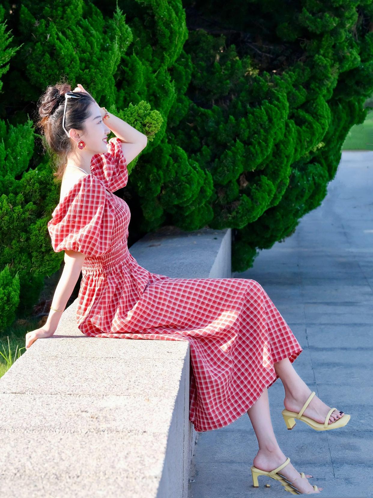 穿上裙子拍好看的照片,不管是坐着还是站着拍,体态还是很关键的,如果是坐着拍。