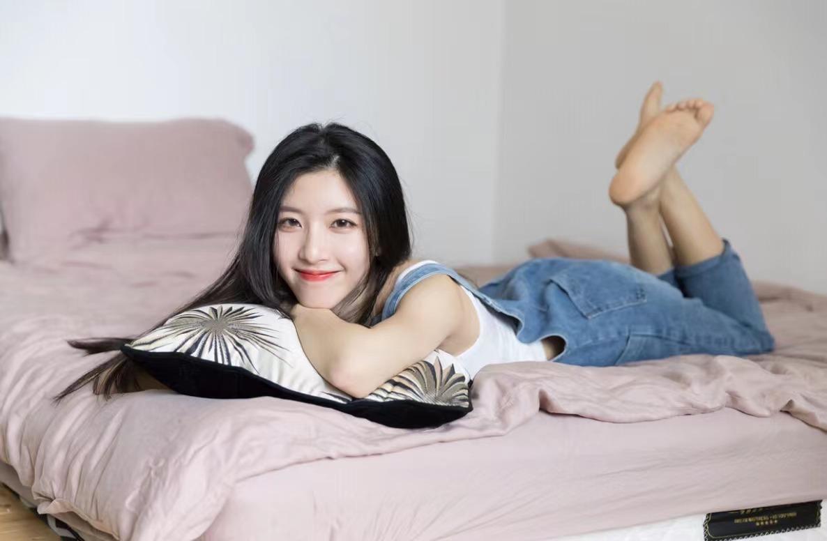找到自己最为放松、自然的状态,慵懒地躺在沙发或者床上,看不看镜头都没有关系,但要把人物安排在画面的对角线之上,让身材更修长、纤细,也要多利用四肢加强人像的立体感,打破画面单调的氛围。