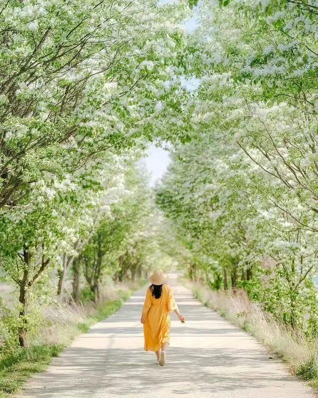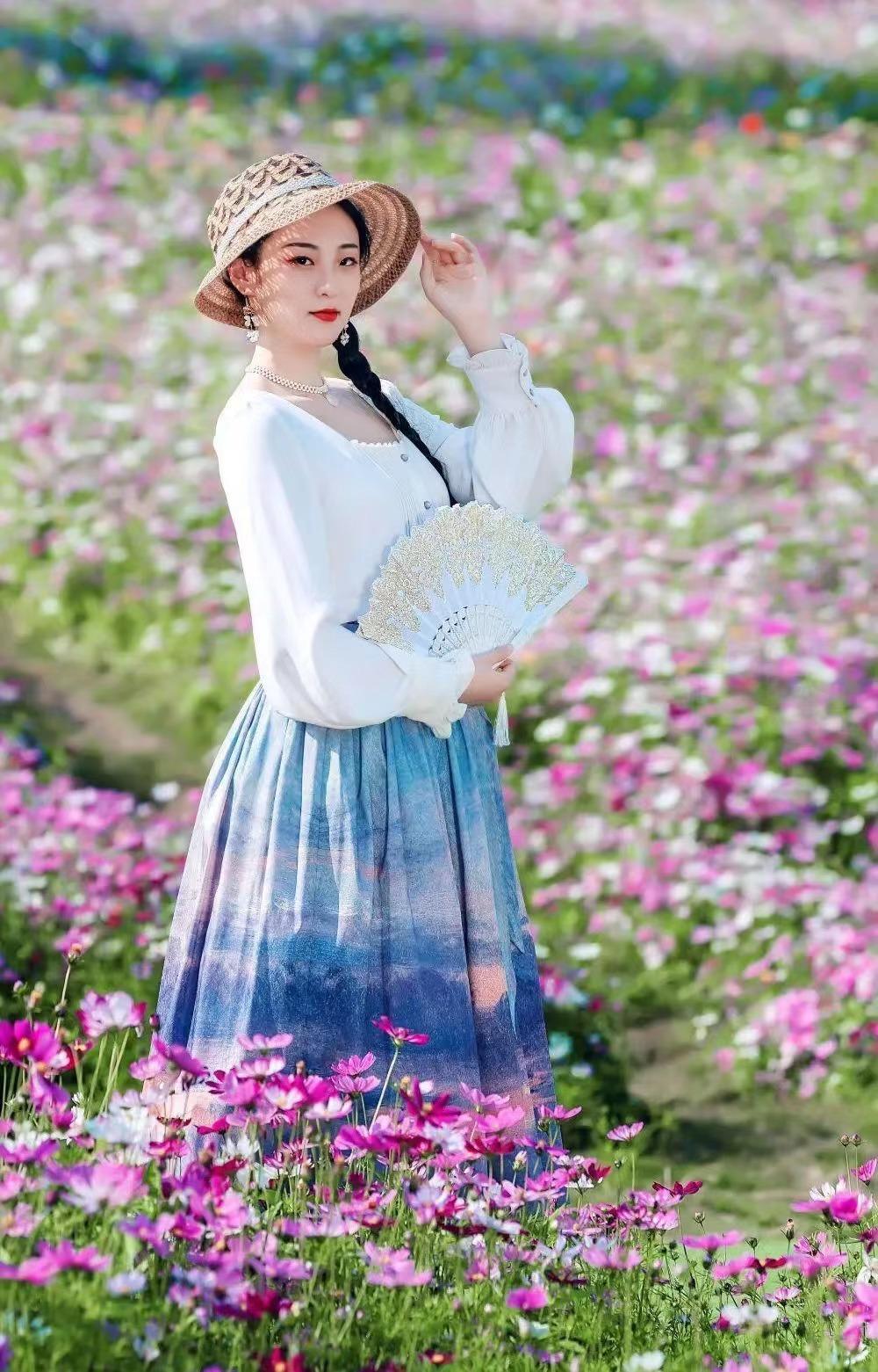 如果姐姐们穿长裙拍照,旋转裙摆、撩裙角的动作很推荐,让衣服飘起来,加强了画面的动态感,也能拍出飘逸、仙气满满的视觉效果,照片更纯粹、优雅有气质。