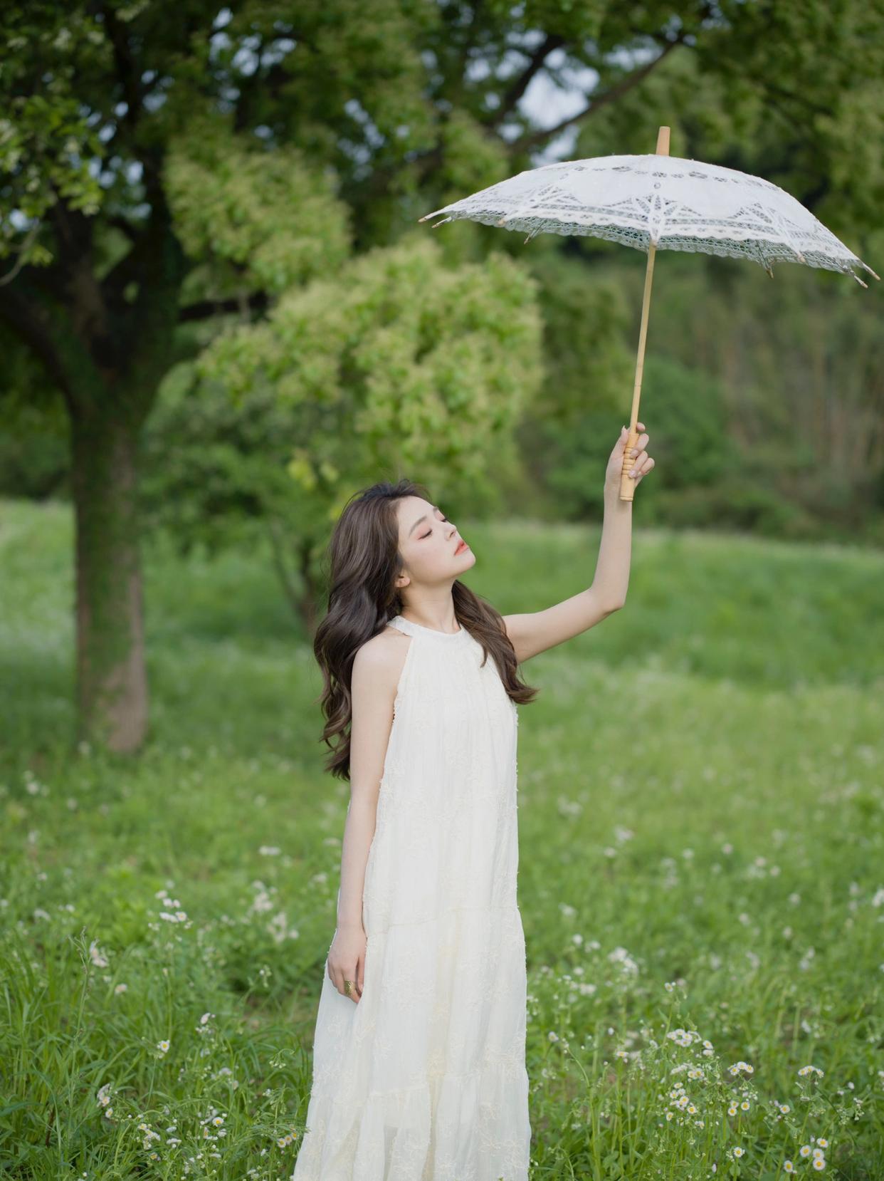 在树林里拍人像,用好各类符合题材的道具,人像才能更出彩,比如透明伞、雷丝带、草帽、鲜花、泡泡水等都可以。