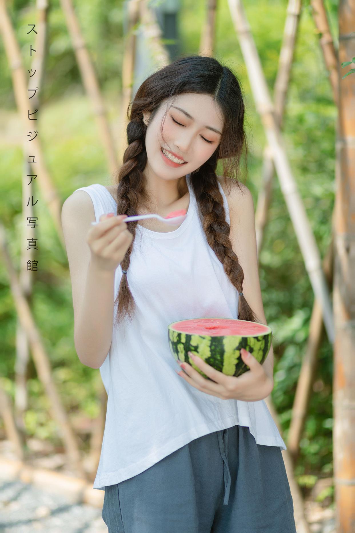 拍清凉感的夏日人像写真,结合上具有夏日元素的道具,比如西瓜、汽水、风扇、气球、水果、鲜花、帽子等等。