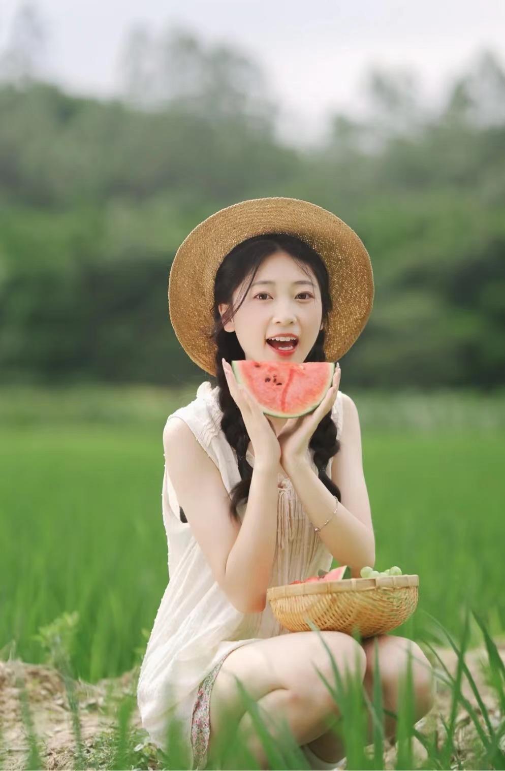 在田间吃西瓜,夏天的清凉感扑面而来。