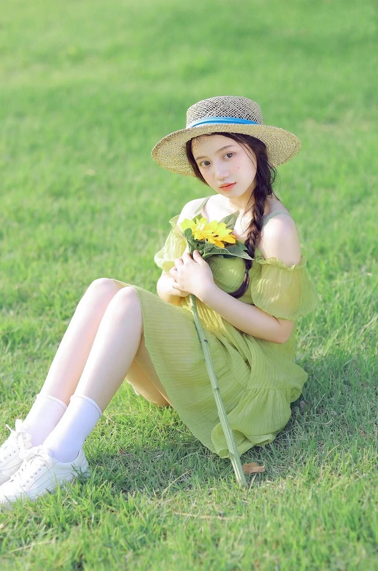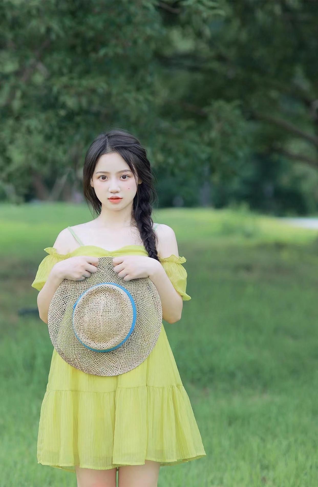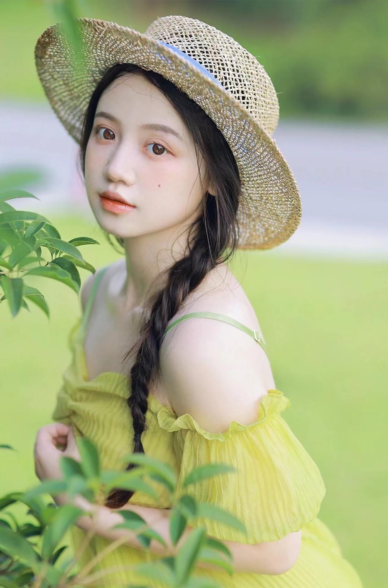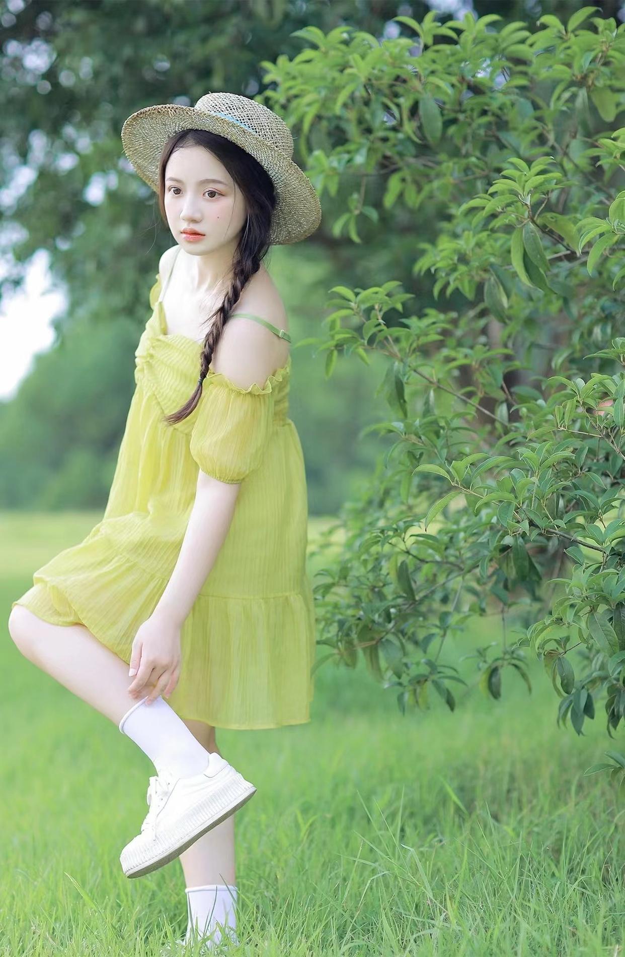 树林拍照,帽子是必备的道具之一,拍正面中景照的时候,可以用帽子遮住腹部位置,避免拍到小肚腩的同时较大的帽子也能和模特的脸形成一大一小的视觉对比,轻松显脸小。